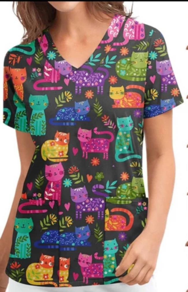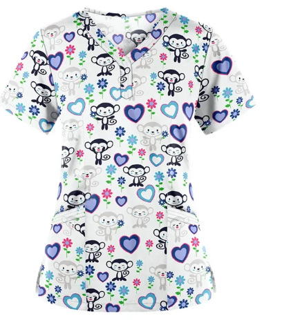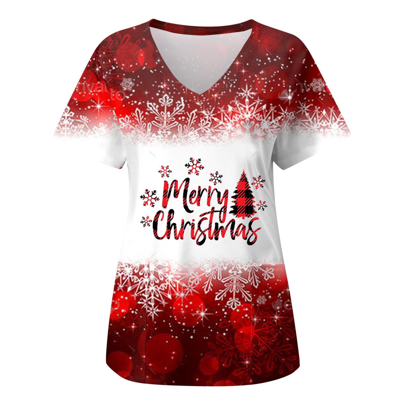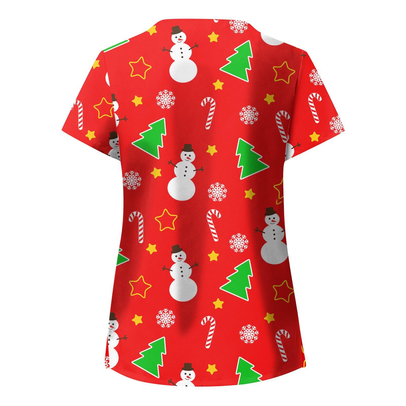 Alibaba.com Wish Amazon Europe and America Christmas Print V-neck Short Sleeve Work Uniform Attendant Top