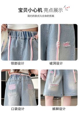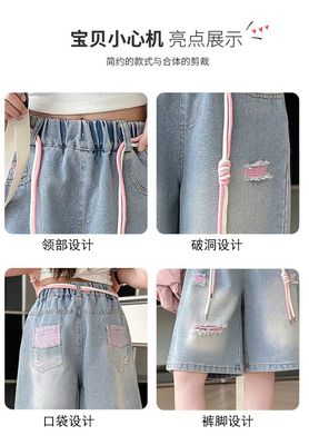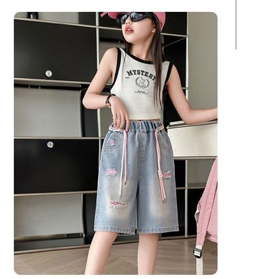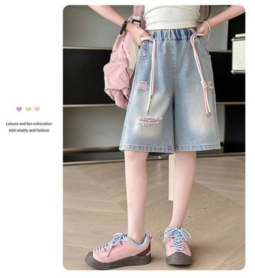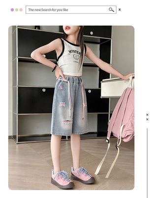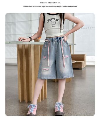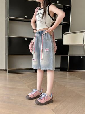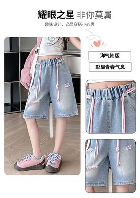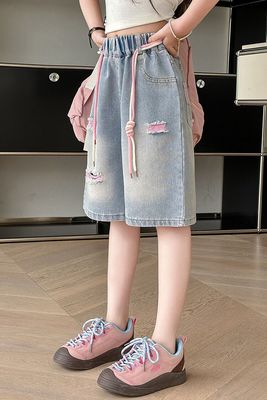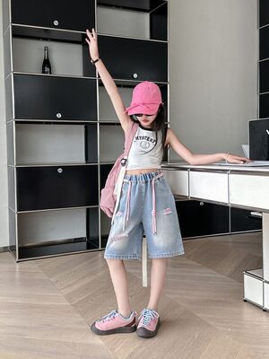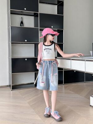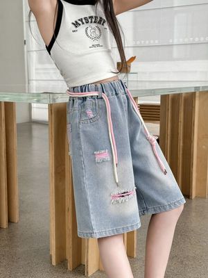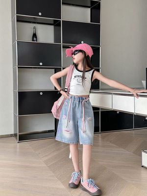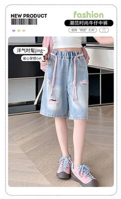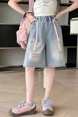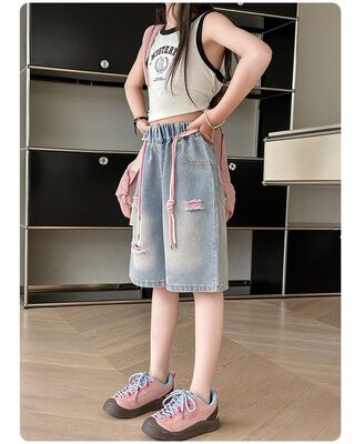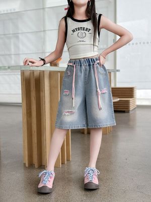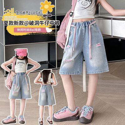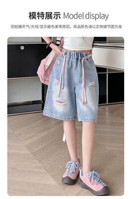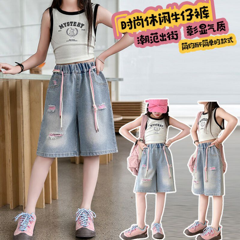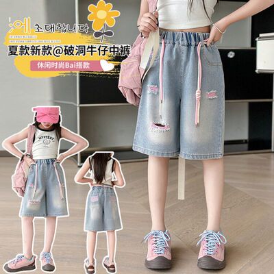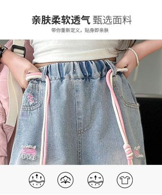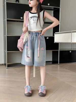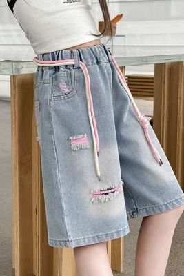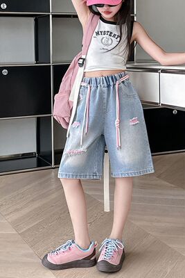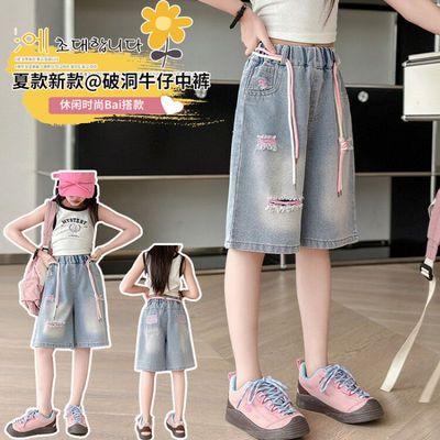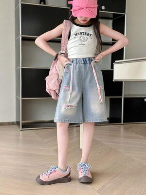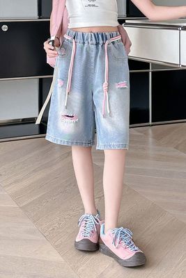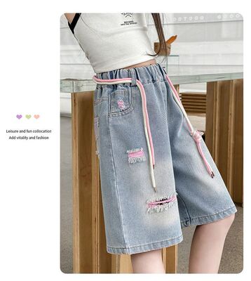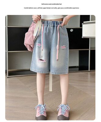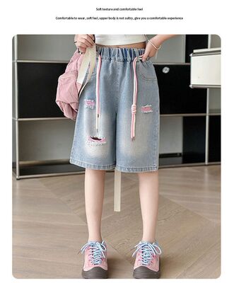 Colored holey denim mid-rise pants