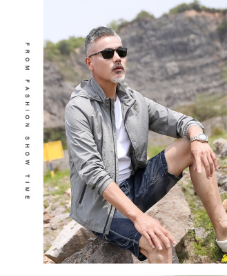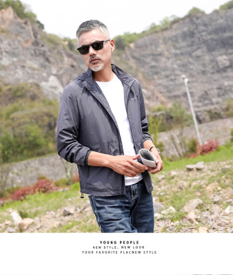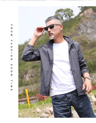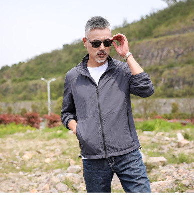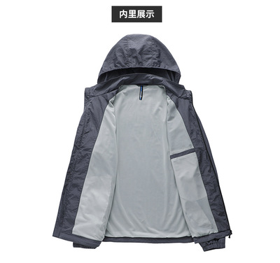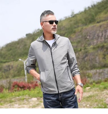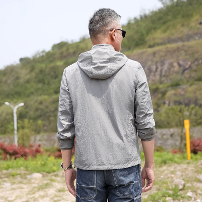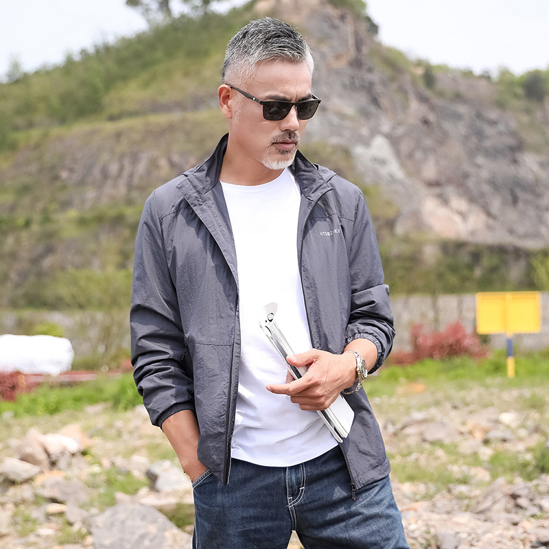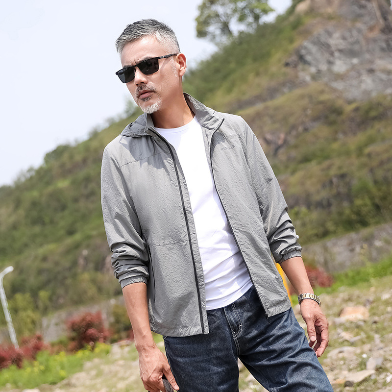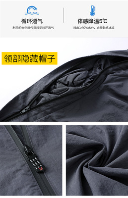 2024 Summer New Fashion Trend Men's Outdoor Sun Protection Hooded Jacket Zipper Jacket Thin Quick-Drying Open Vest
