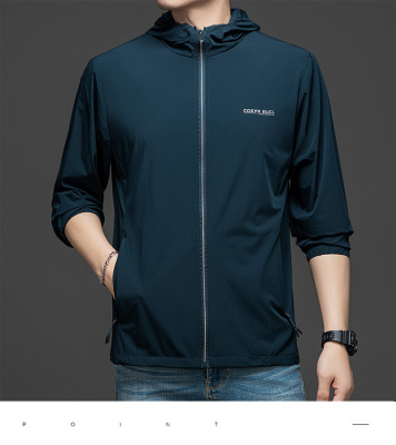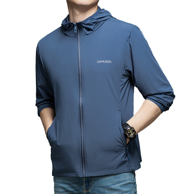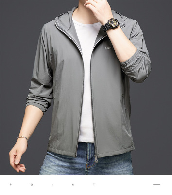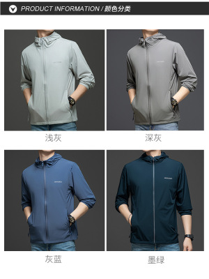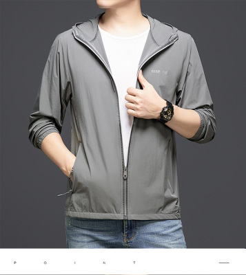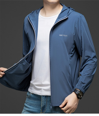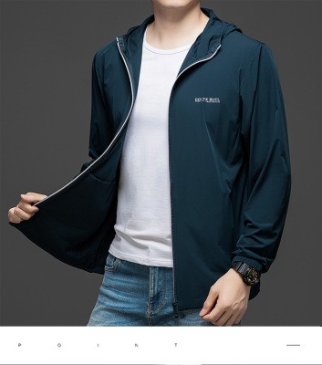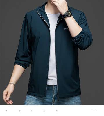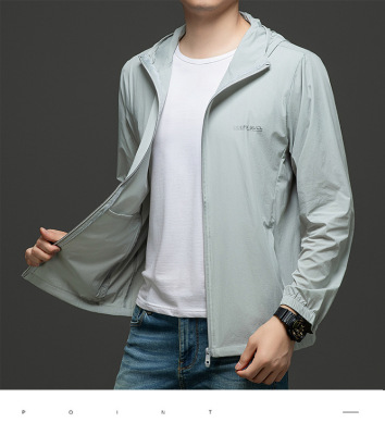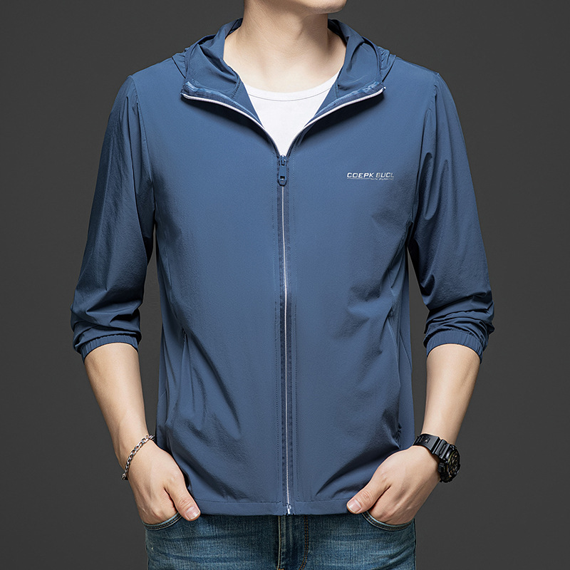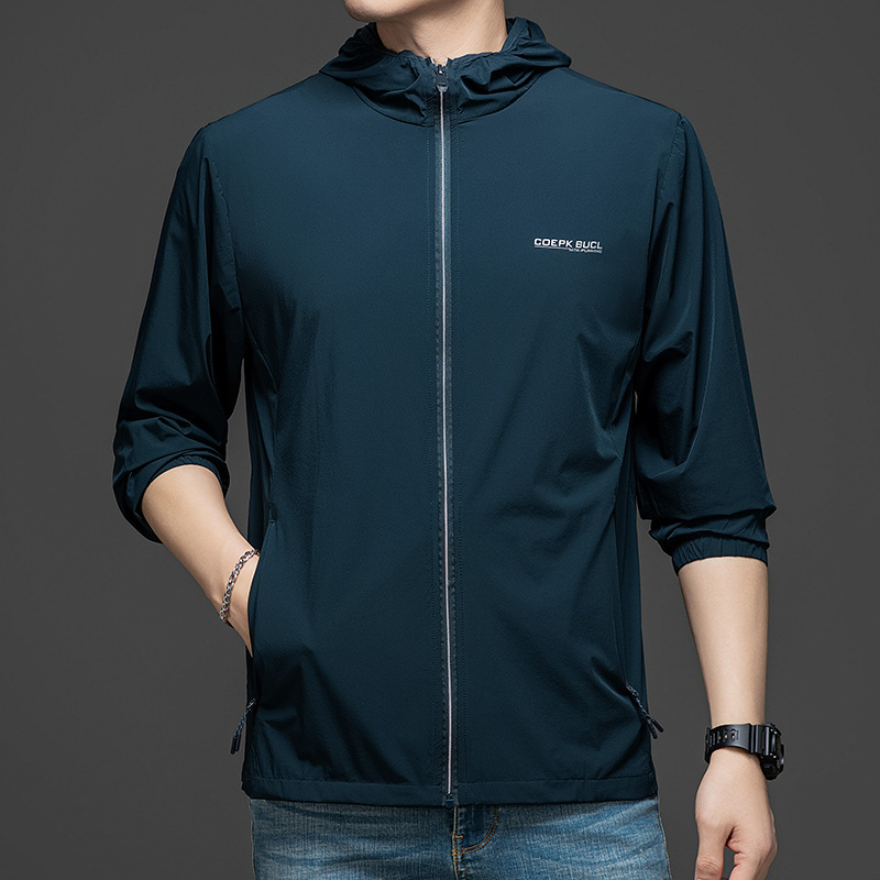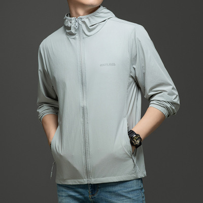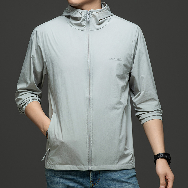 Men's Summer Lightweight Hooded Sun Protection Jacket, Casual Sporty Outerwear, Slim Fit for Teenagers and Students