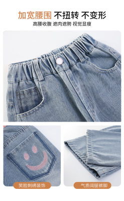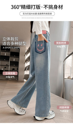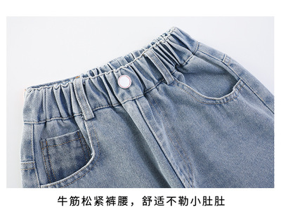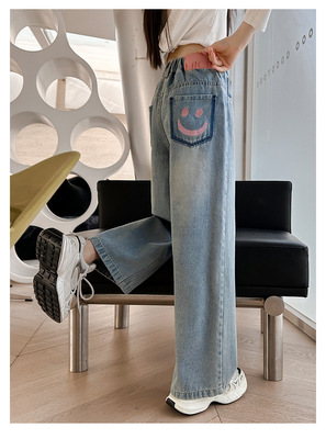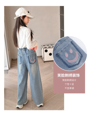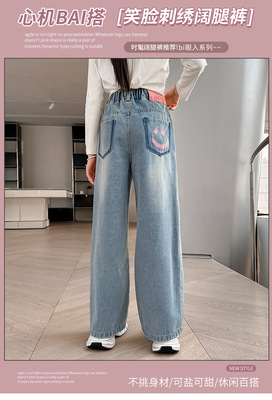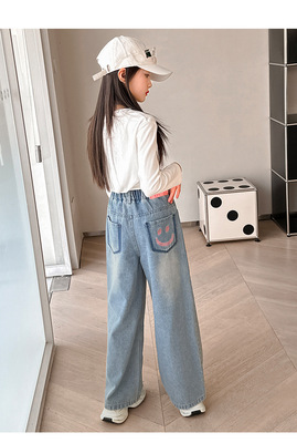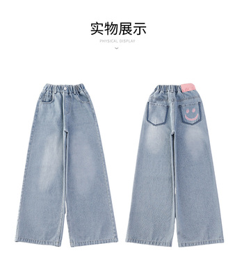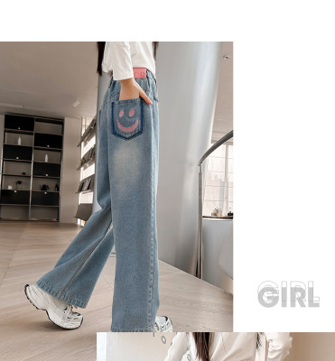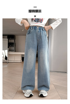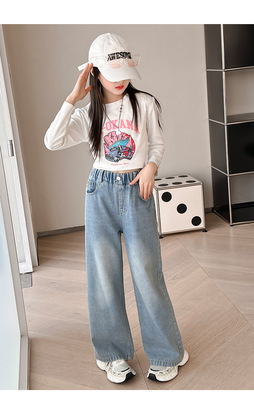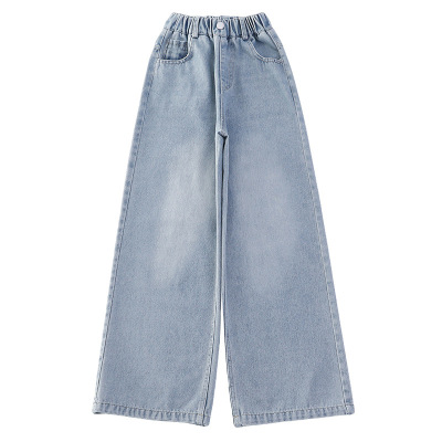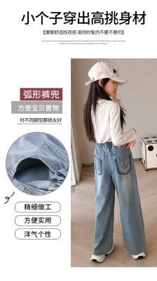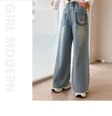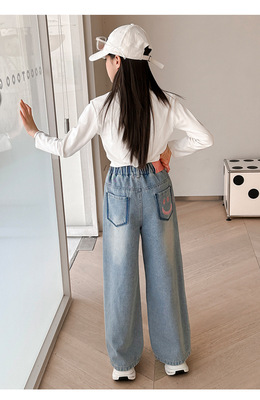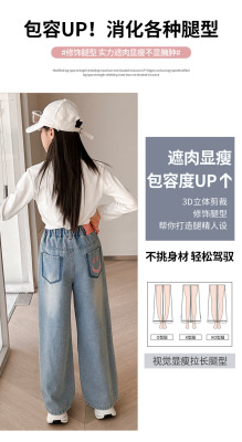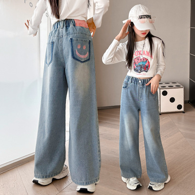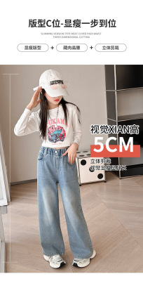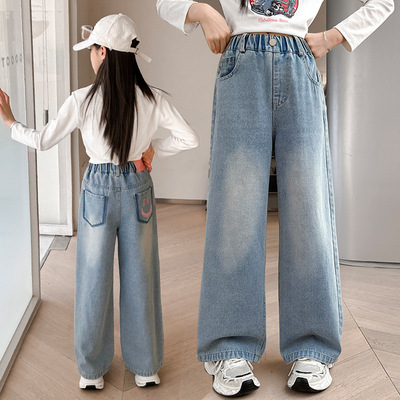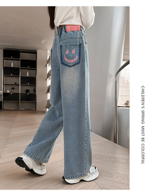 Girls' jeans spring and autumn for big kids, spring wide-leg pants, spring Korean fashion, fashionable, loose spring clothes children's pants
