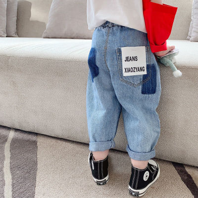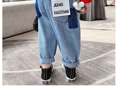 女童牛仔褲春秋季2024新款時髦男寶寶秋款兒童裝秋裝洋氣蘿蔔褲子