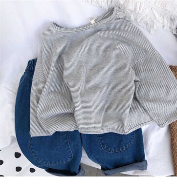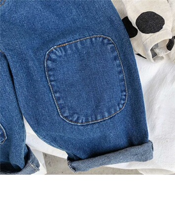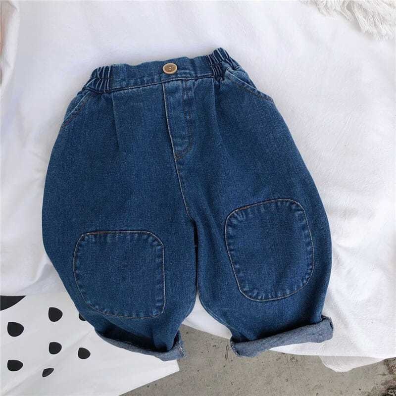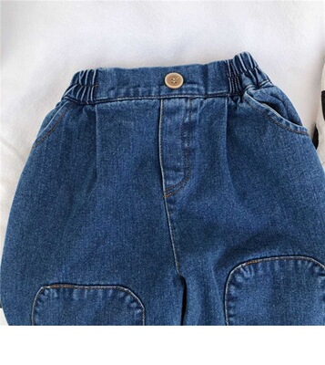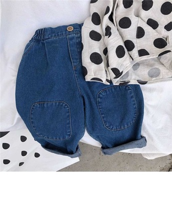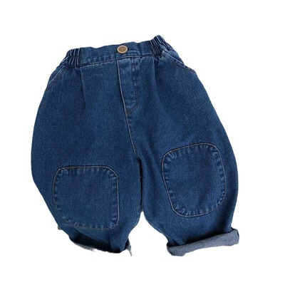 New Spring and Autumn Children's Denim Jeans Korean Style Nostalgic Boys and Girls Knee Patch Denim Baby Casual Pants