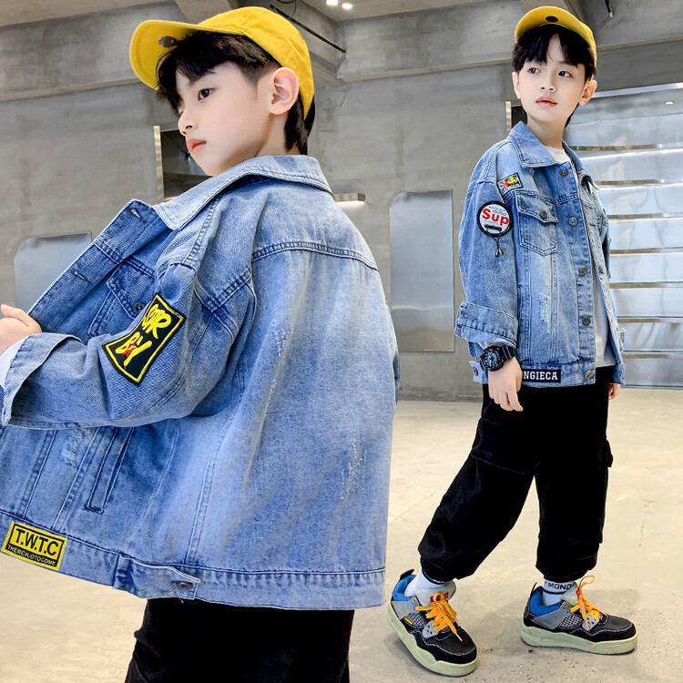 Boys' denim jacket 2024 spring and autumn new large children's autumn wear boy street-style stylish Korean version cool trendy