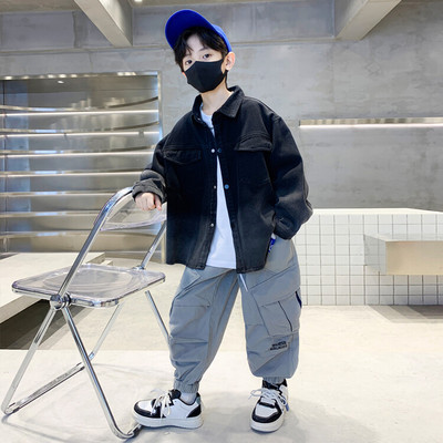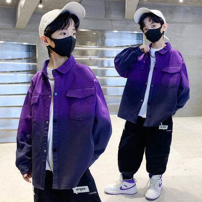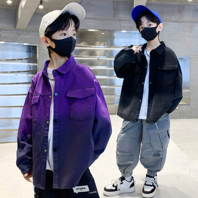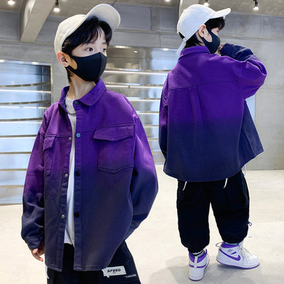 Spring Boys' Jacket New Arrival Kids' Clothing Children's Mid-to-Large Size Boys' Tie-Dye Casual Jacket with Lapel, Loose Fit, Trendy for Outwear