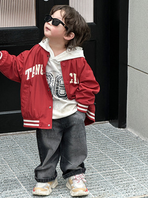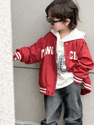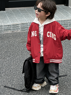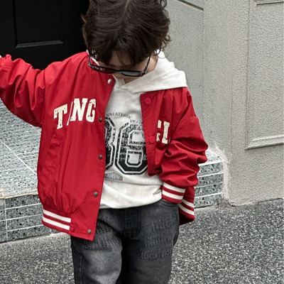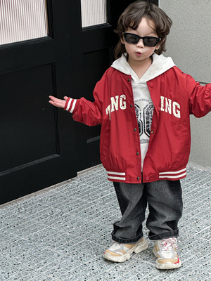 春款男童棒球服2024韓版兒童外套寶寶新款字母印花小童春季衣服