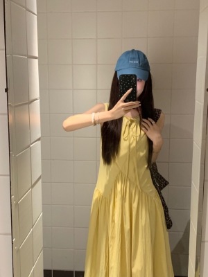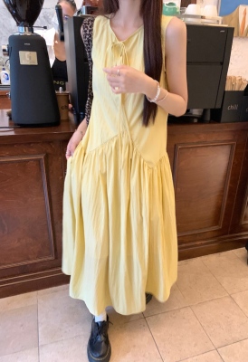 Lemon natural pleated water cotton dress