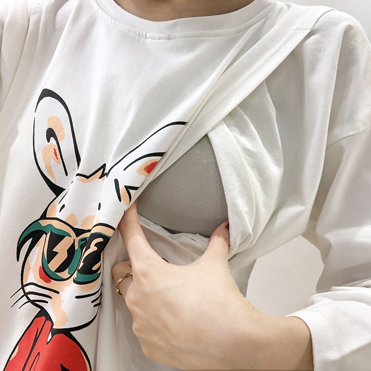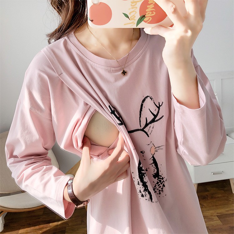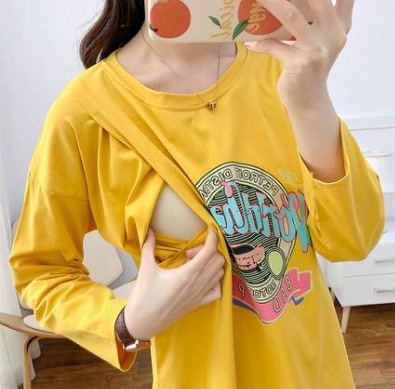 孕婦產後哺乳上衣外穿月子服長袖薄款T恤辣媽款春秋裝餵奶期衣服