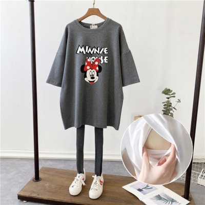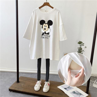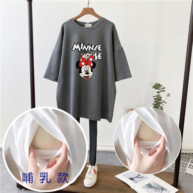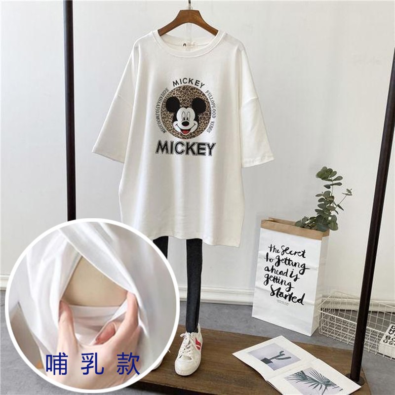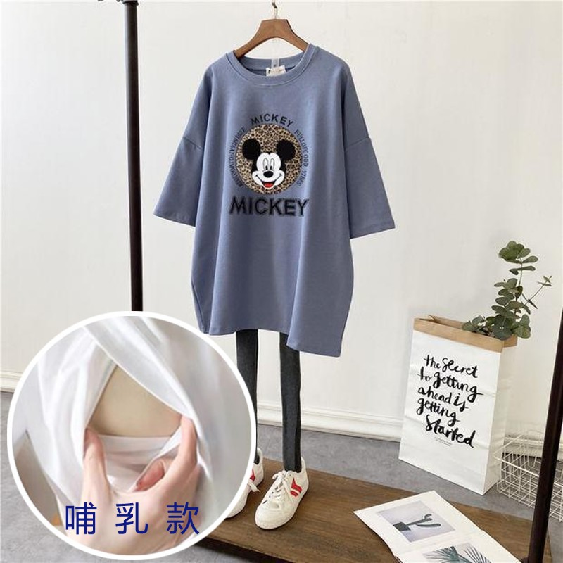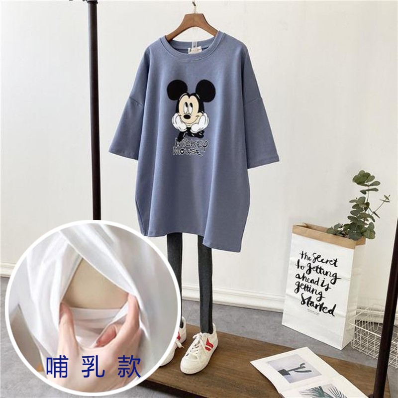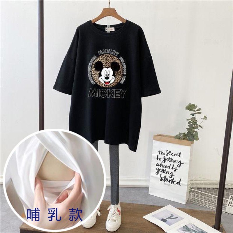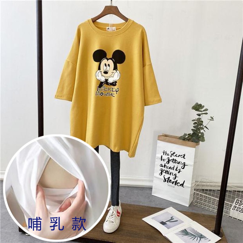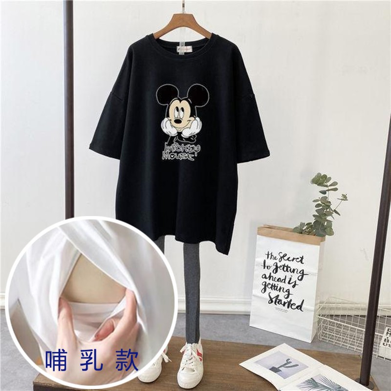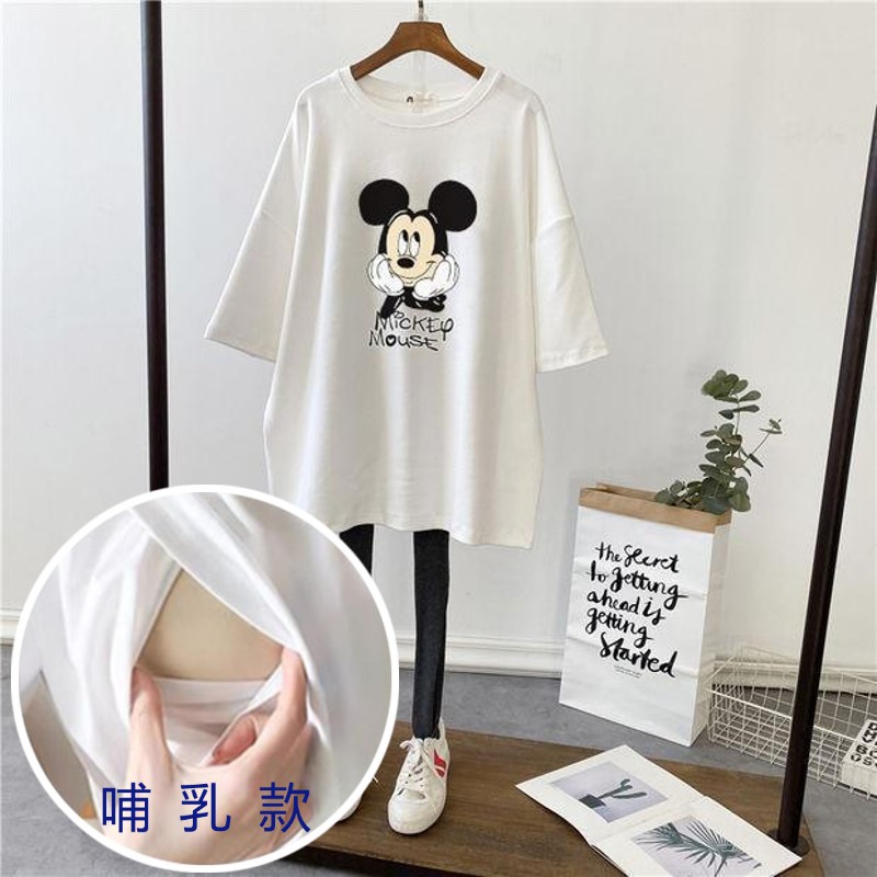 哺乳夏裝新孕婦哺乳短袖中長T恤寬鬆月子服餵奶上衣裙外出辣媽款