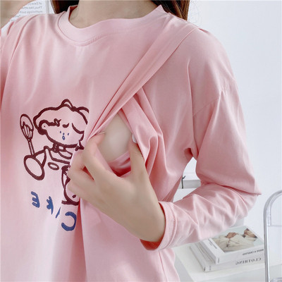 孕婦裝哺乳衣服秋冬季產後外穿長袖T恤時尚餵奶衣外出春秋款上衣