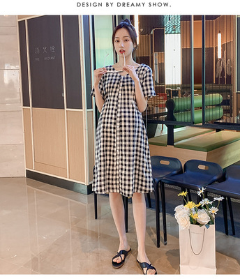 Maternity Summer New Fashion Maternity Long Dress V-Neck Check Button Loose Plus Size Maternity Dress
