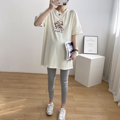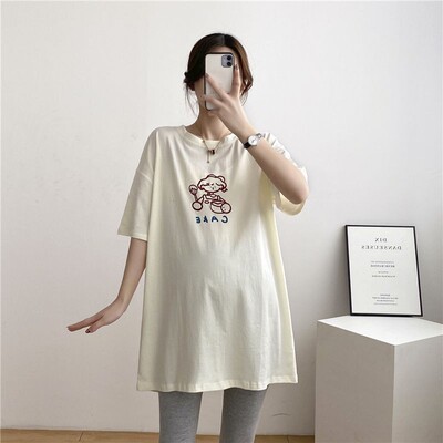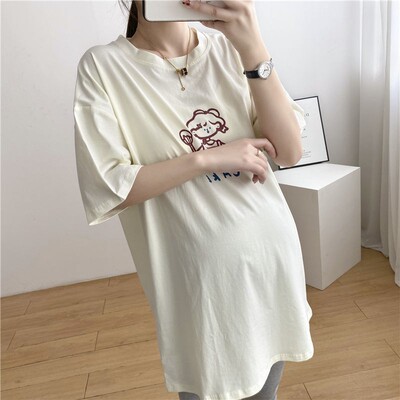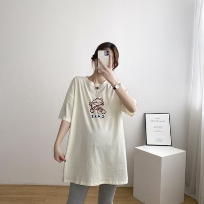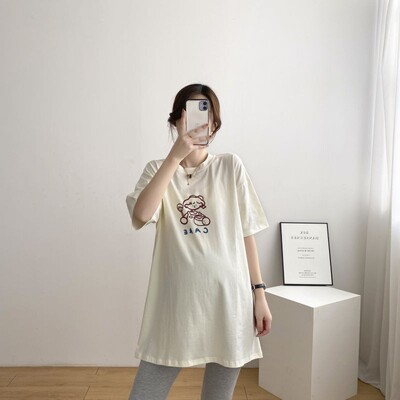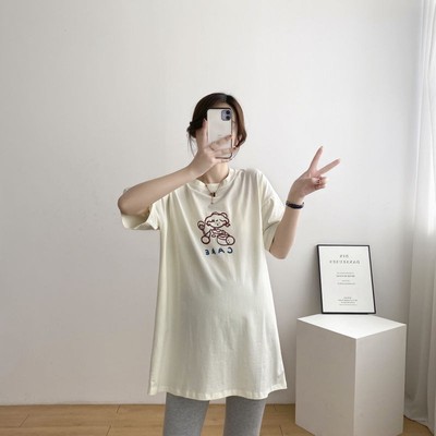 哺乳衣孕婦裝哺乳T恤韓版寬鬆中長款短袖夏裝圓領上衣孕婦新款夏