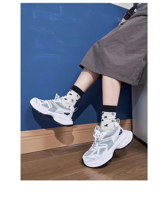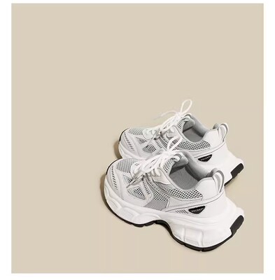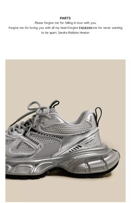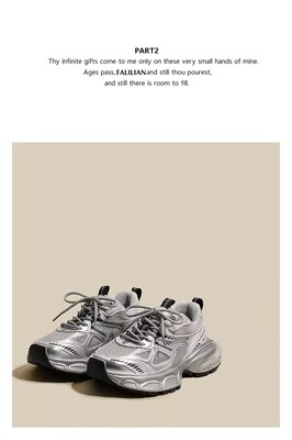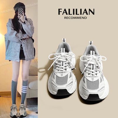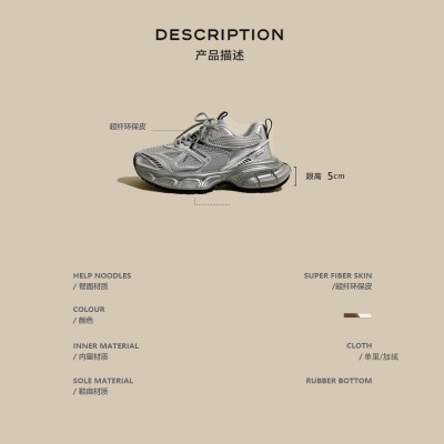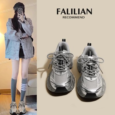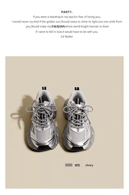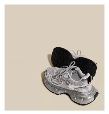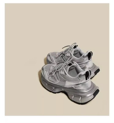 銀色老爹鞋女2024新款春夏透氣鞋子厚底百搭休閒鞋輕便運動鞋