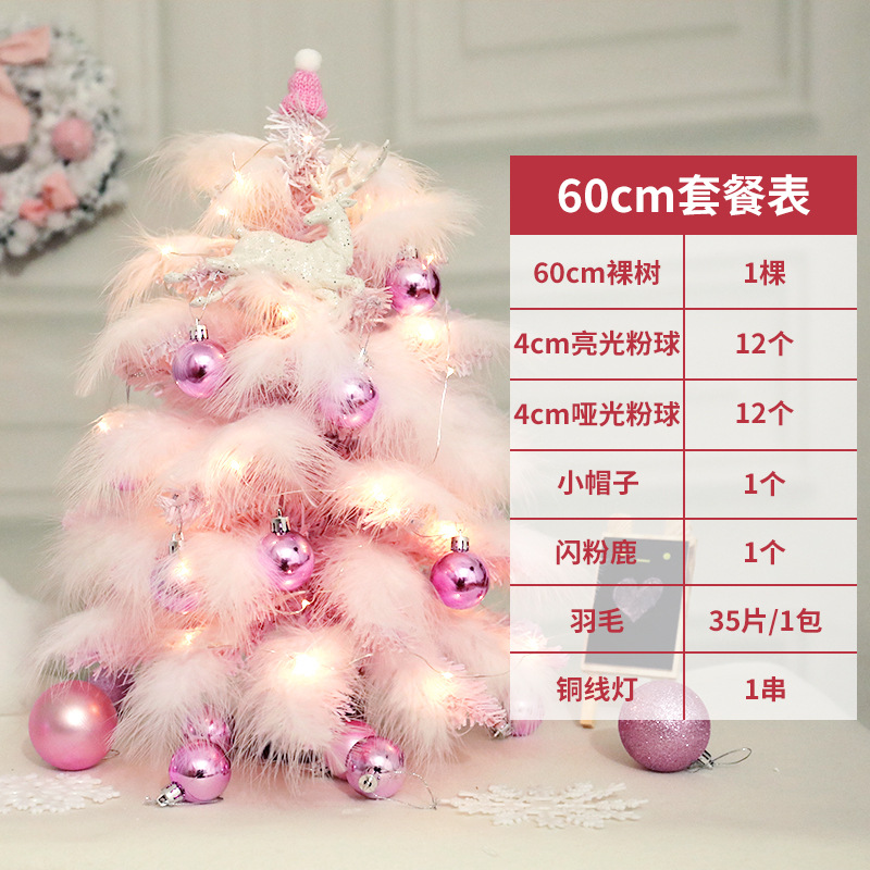Pink Christmas Tree Set for Internet Celebrity 45cm Mini Christmas Tree Feather Girl Heart DIY 60cm Christmas Set Tree