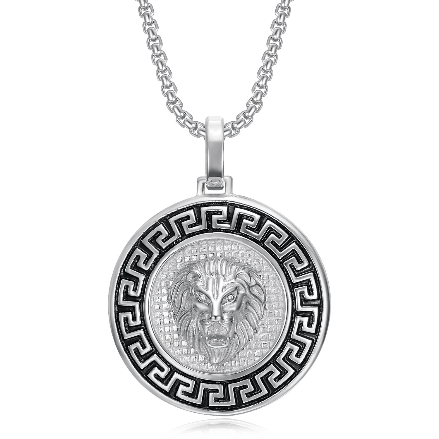 New European and American hip-hop brand accessories titanium steel gold-plated anti-fading oil round plate Great Wall pattern lion head pendant