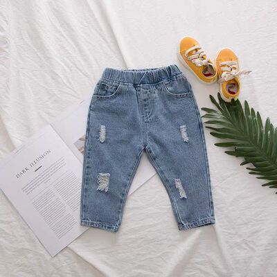 Children's Denim Jeans with Holes - Spring and Autumn New Arrival for Girls and Boys Aged 1-8 - Loose Long Pants for Babies - Stylish Dad Pants