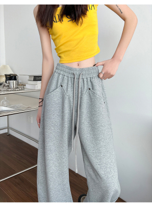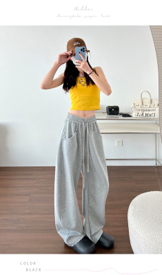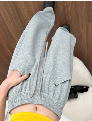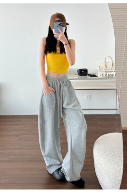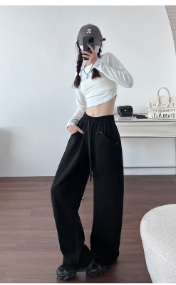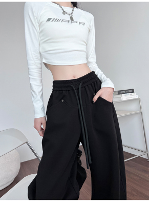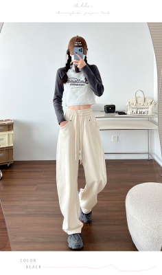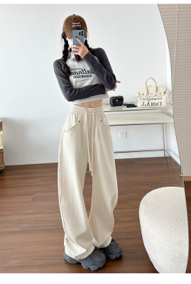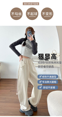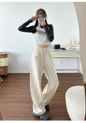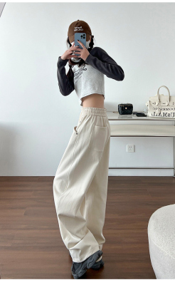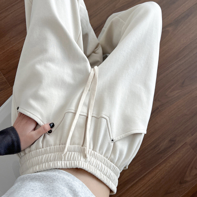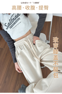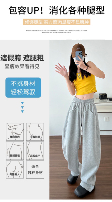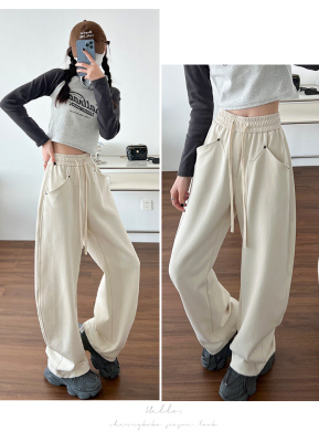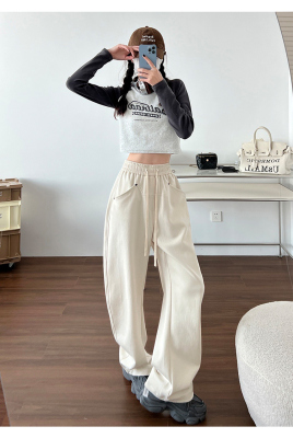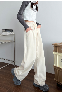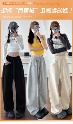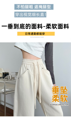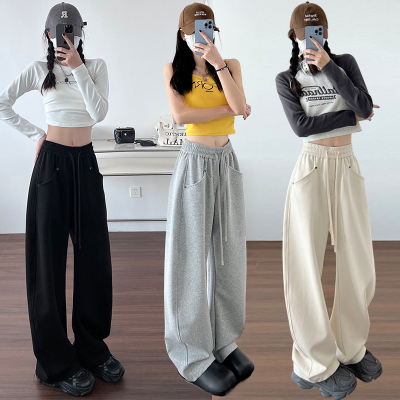 Spring and summer new off-white wide-leg pants for women, banana sickle pants, drapey casual sweatpants, straight trousers