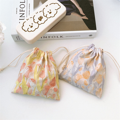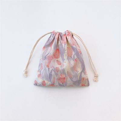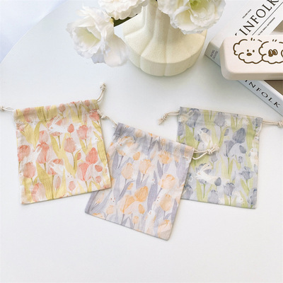 Factory-supplied Tulip-Shaped Portable Storage Bags: Stylish Printed Canvas Drawstring Pouches for Jewelry and Accessories