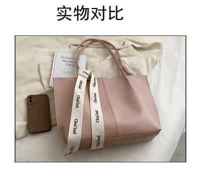 2023新款復古質感子母包包女時尚絲帶單肩托特包通勤大容量手提包