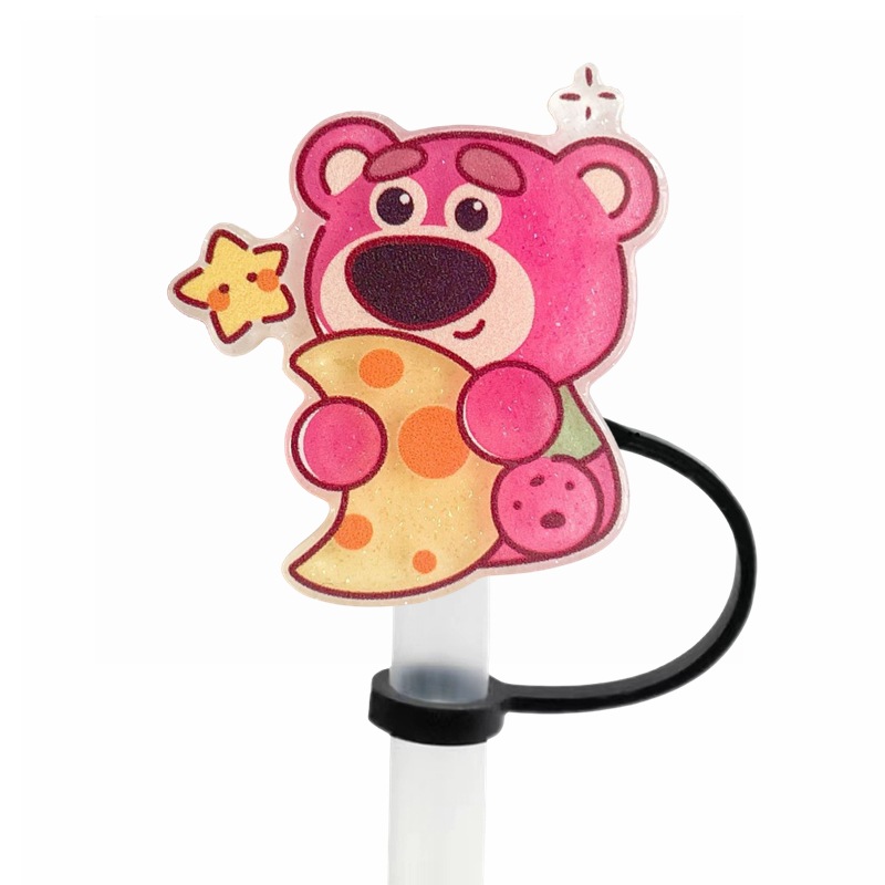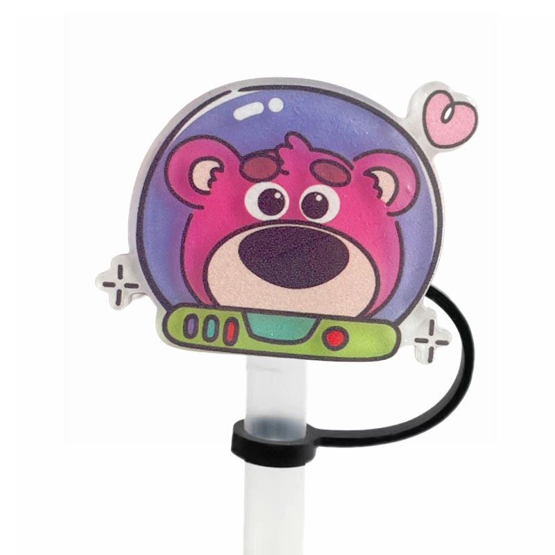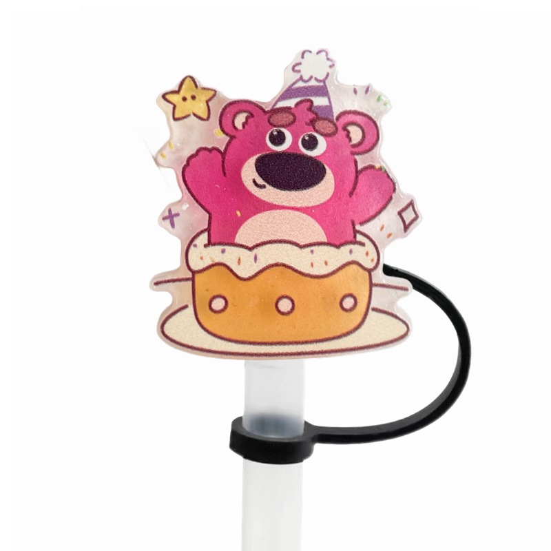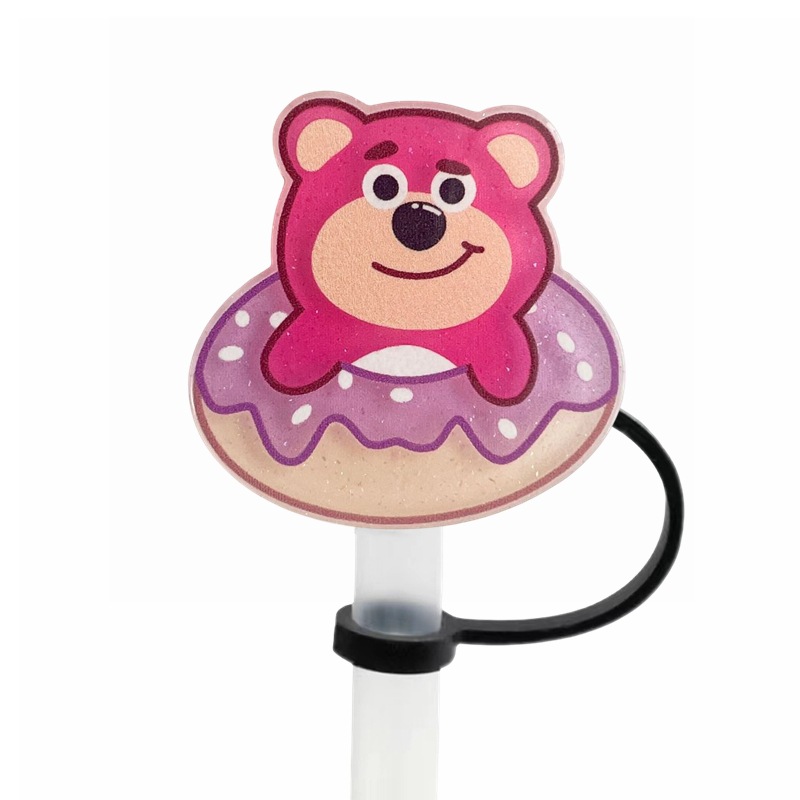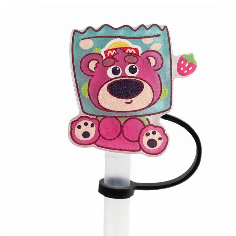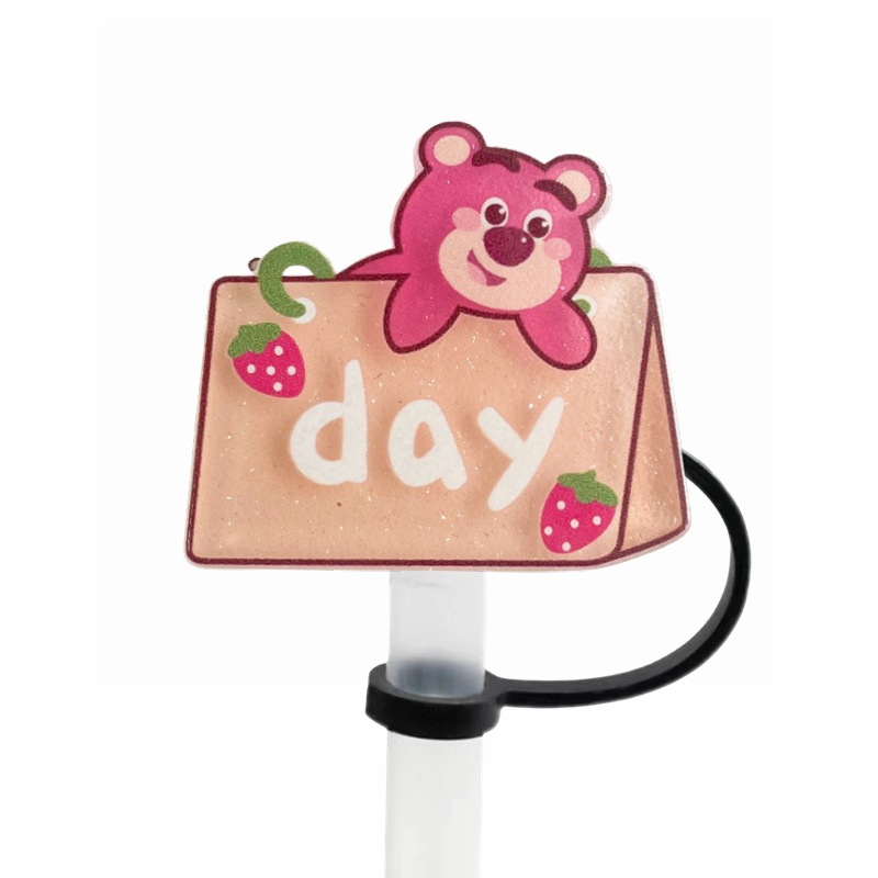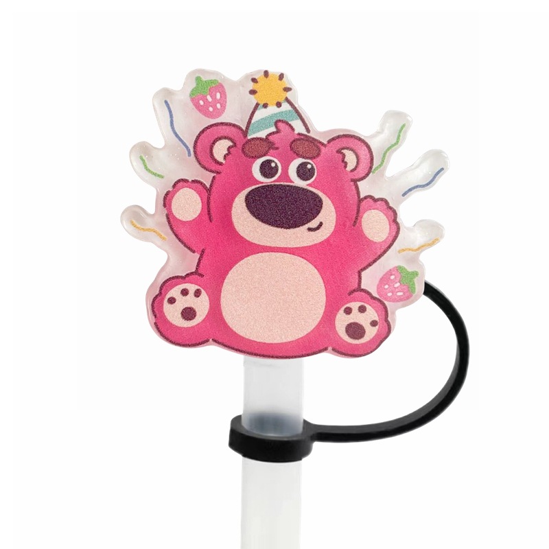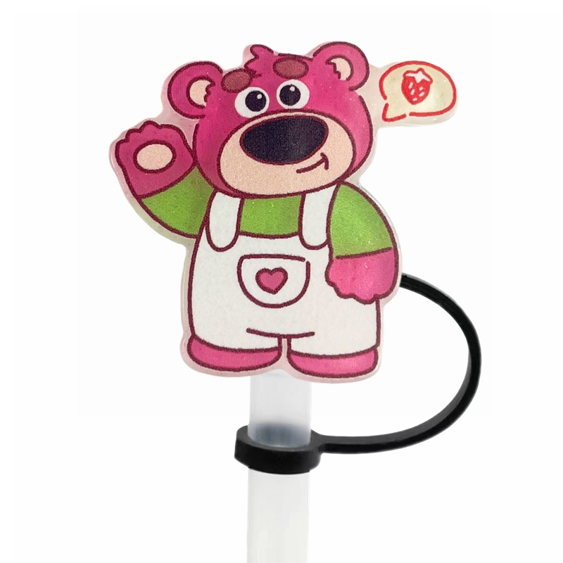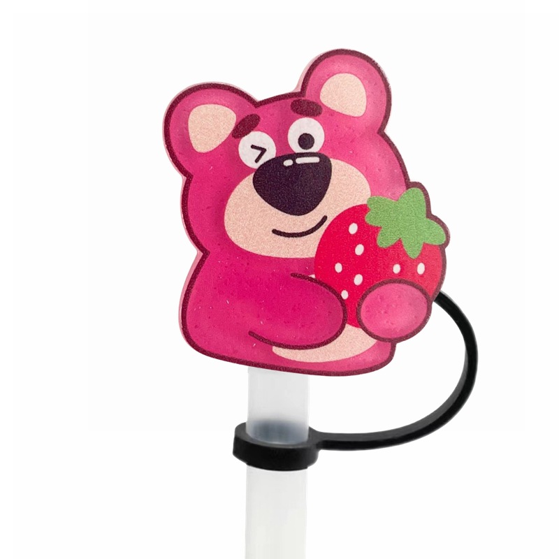 可愛草莓熊吸管塞創意diy配件10mm直徑吸管帽可重複使用裝飾跨境