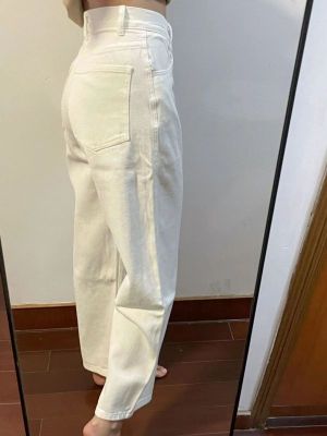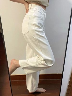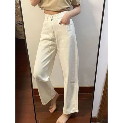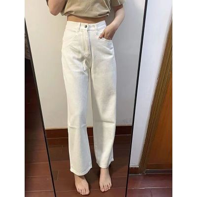 Ready stock ~ white straight jeans for women, spring and autumn new high-waist slim wide-leg pants high street ins trend
