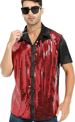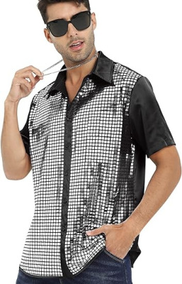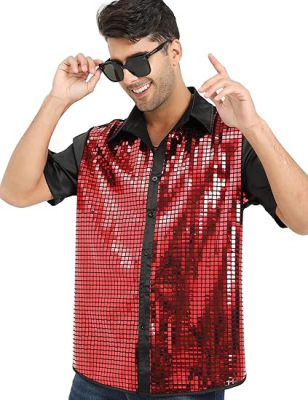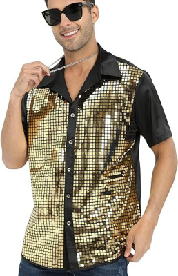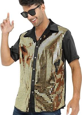 Men's Shirt New Year Cross-border Men's Shirt Glitter Shirt 1970s Disco Party