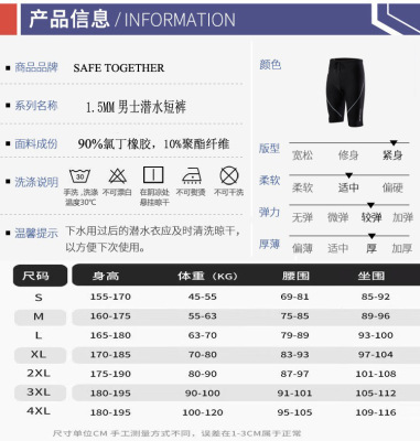 New Men's Dive Shorts 1.5MM Men's Dive Jacket Dive Suit Surfing Suit Outdoor Dive Pants R016