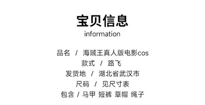 真人版路飛-全套衣服(不含帽子)