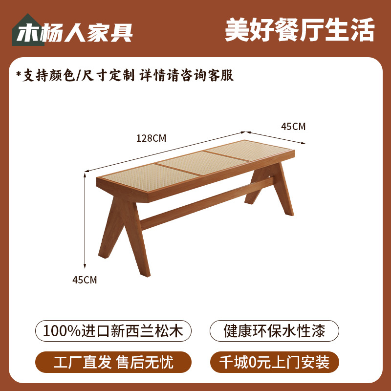 Solid Wood and Rattan Bench: 138*45*45cm
