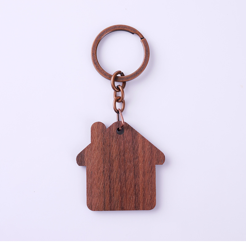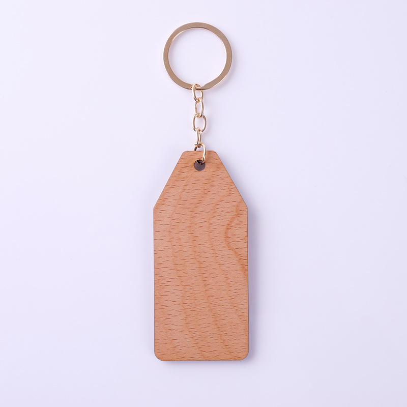 Keychain with solid wood carving, customizable shape, homestay key tag with engraved text, hanging ornament, wooden room decoration badge
