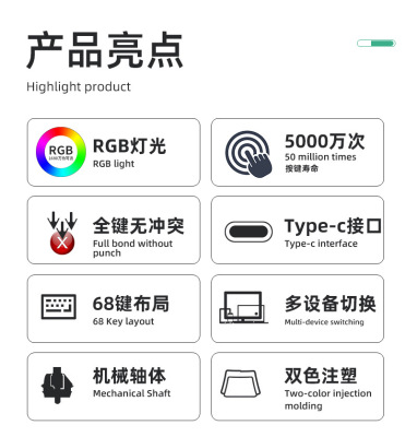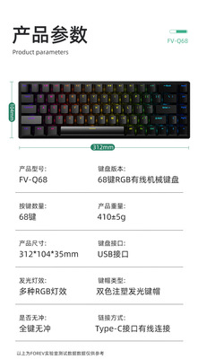 Mechanical Keyboard Q68 Wired Gaming RGB Backlit Desktop Computer Portable Mini Keyboard Wholesale