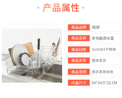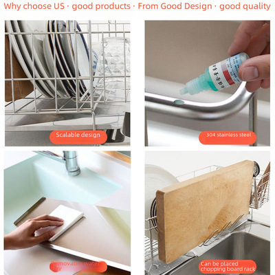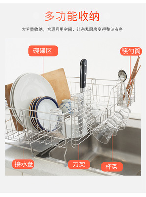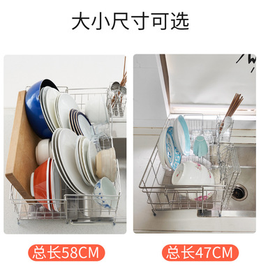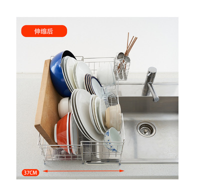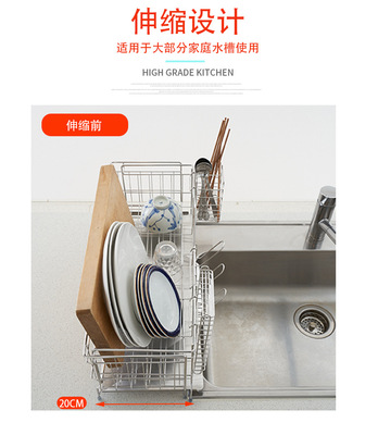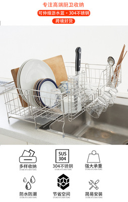 Cross-border 304 stainless steel telescopic draining basket storage, no installation required kitchen countertop bowl and cup rack, wholesale