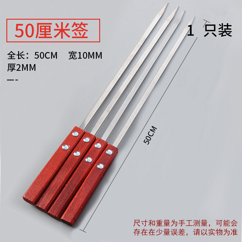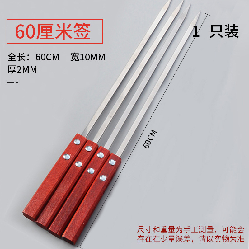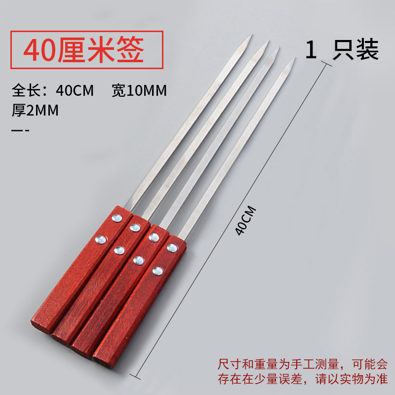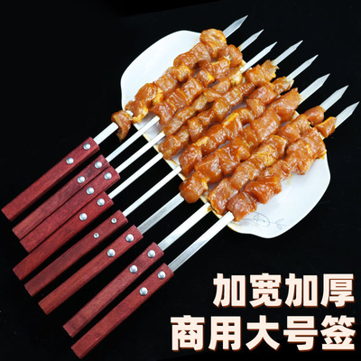 Wholesale Large Handle Stainless Steel BBQ Skewer for Lamb Kebabs and Meat Skewers Tool Flat Steel Skewer BBQ Needle