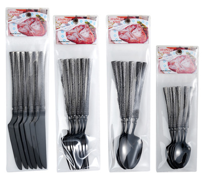 跨境熱銷系列 6PCS裝不鏽鋼刀叉勺子套裝鍍金中東超市西餐具PVC袋
