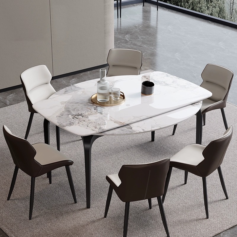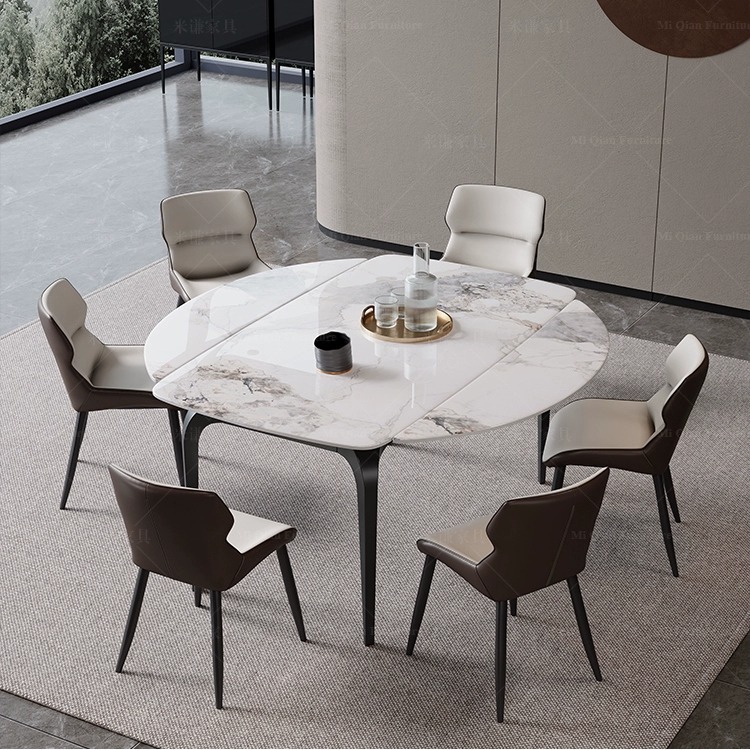 Italian-style minimalist slab dining table, extendable and foldable round table, small apartment simple modern household round dining table