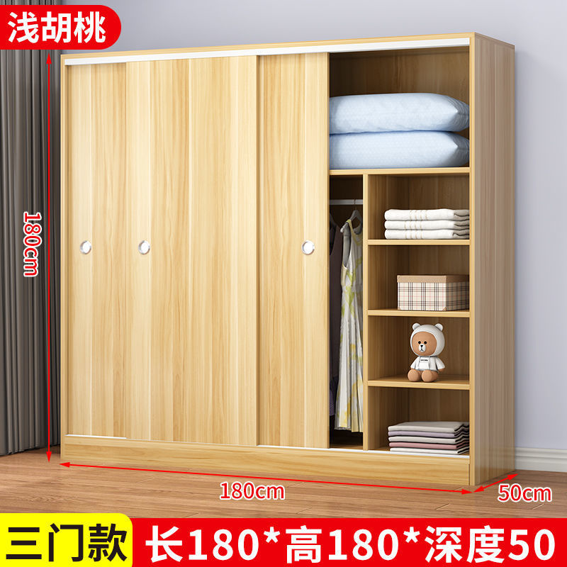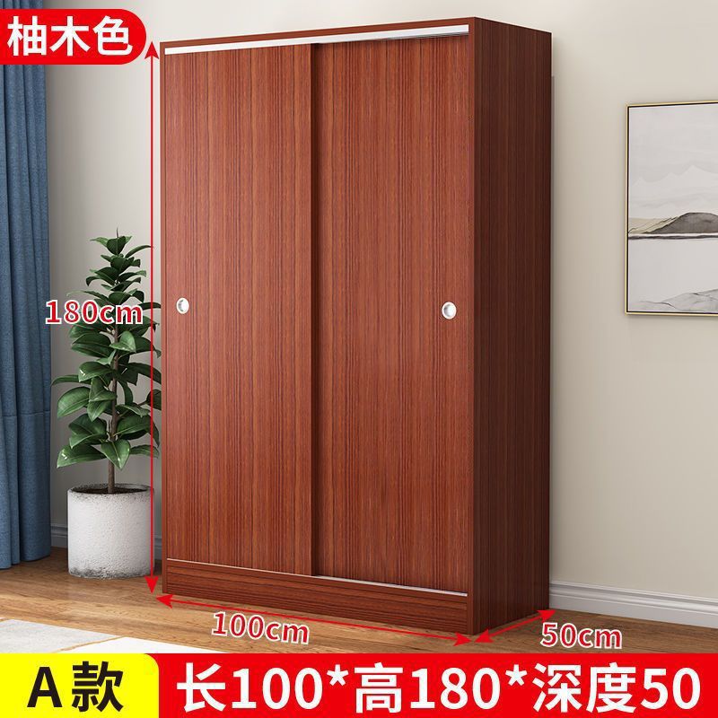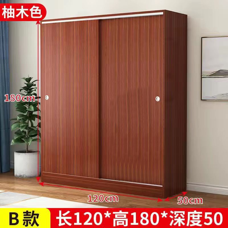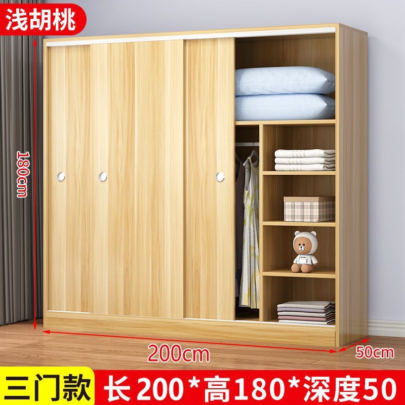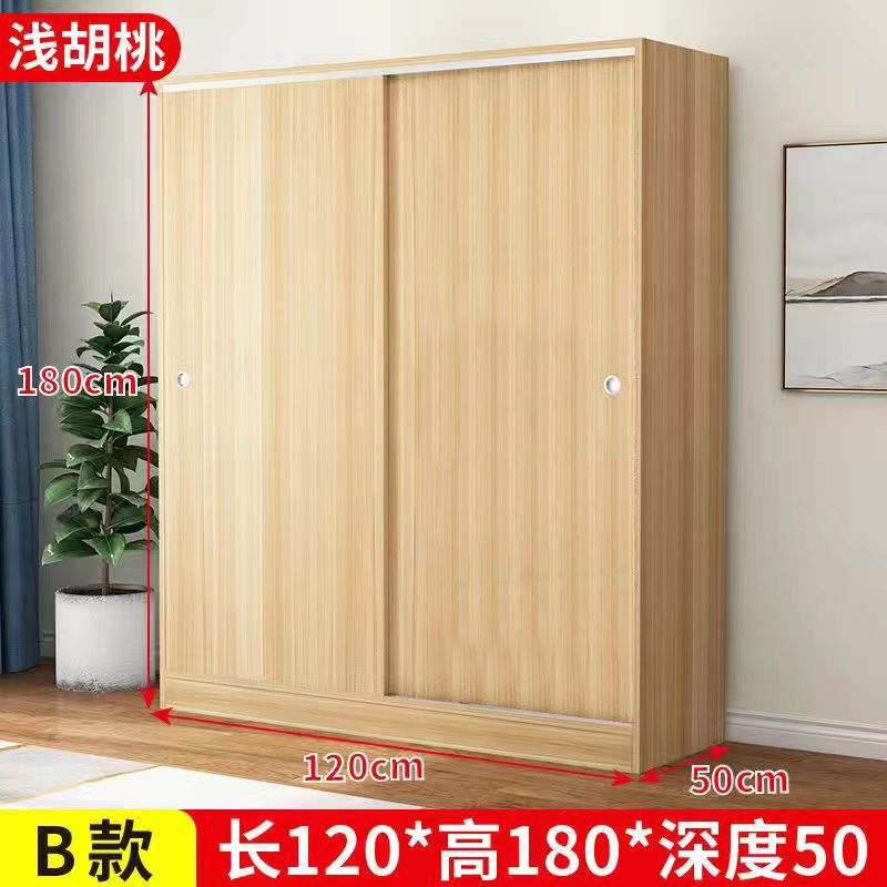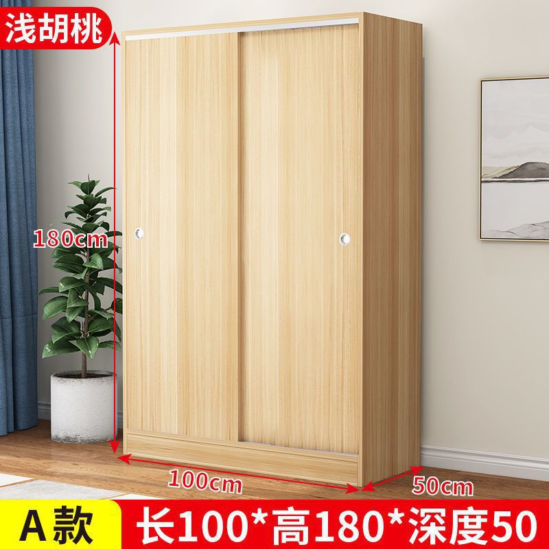 實木家用衣櫃臥室滑動推拉門板式出租屋胡桃木簡易柜子現代簡約色