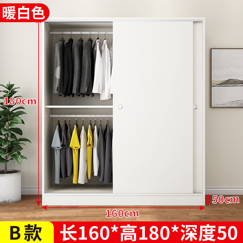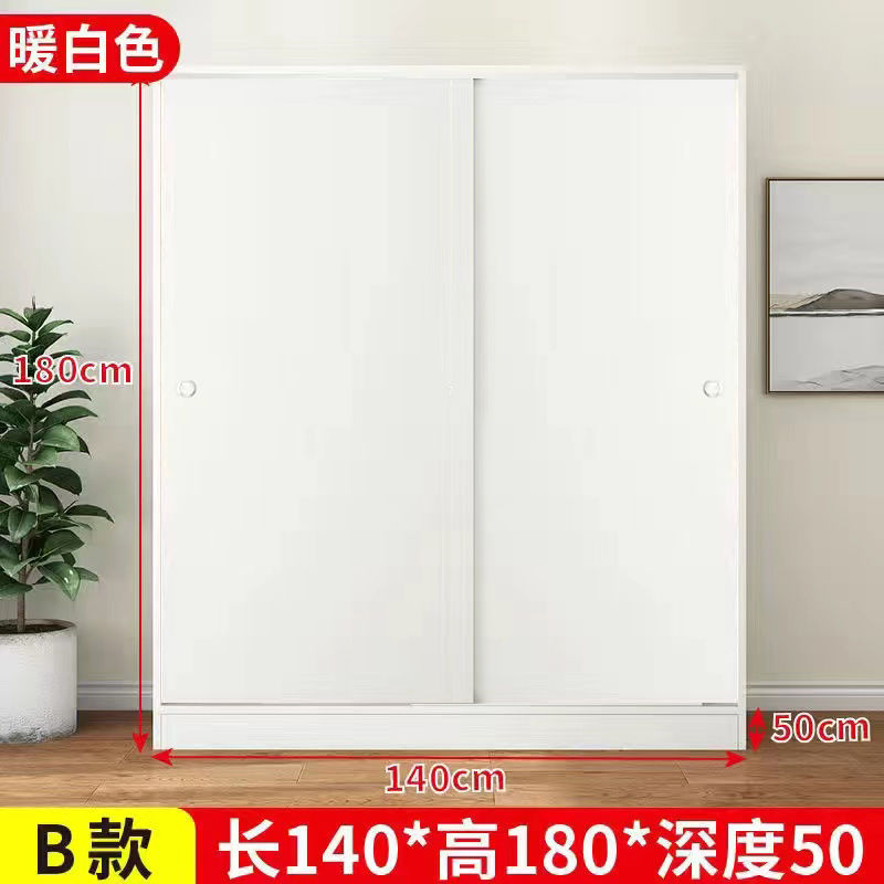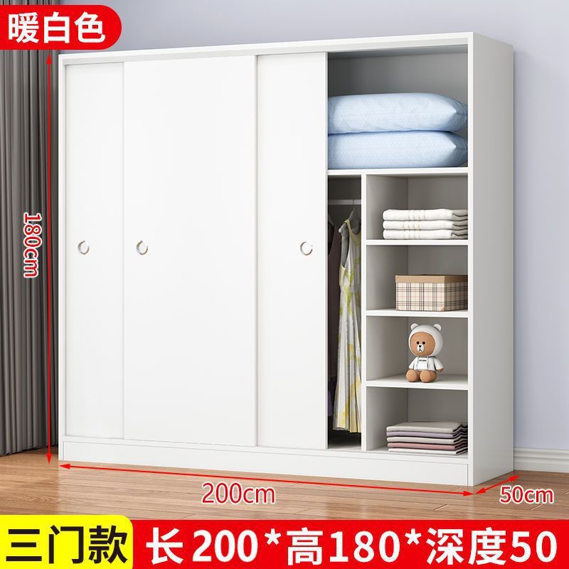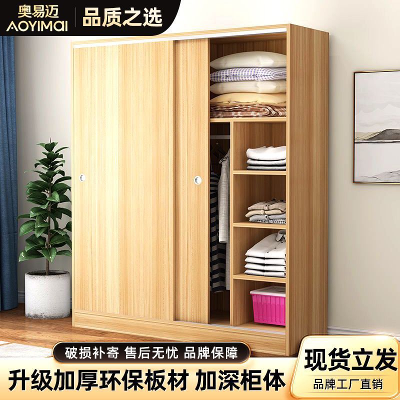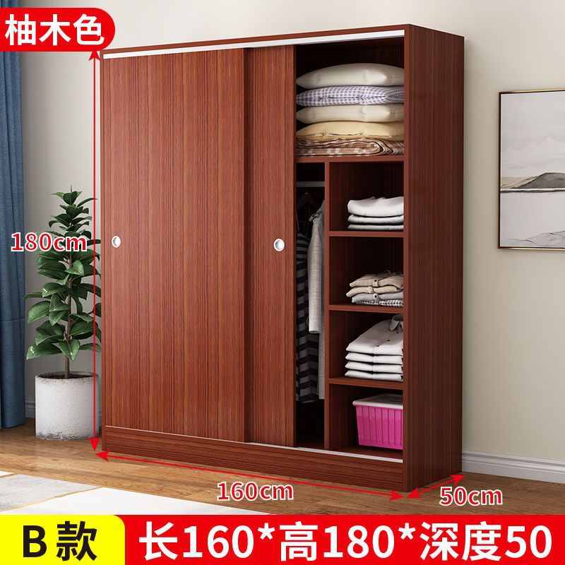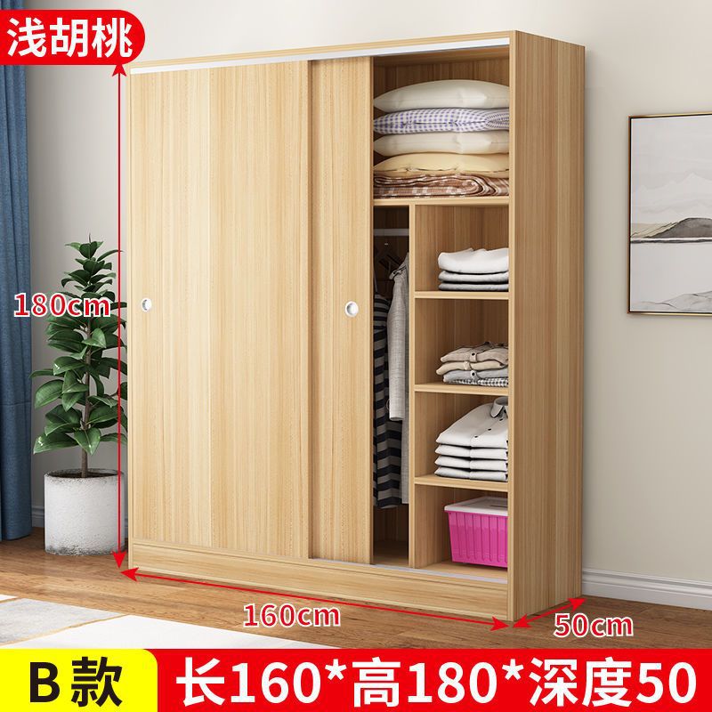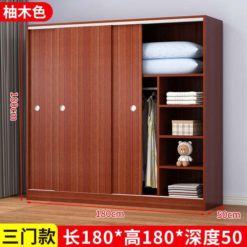 實木家用衣櫃臥室滑動推拉門板式出租屋胡桃木簡易柜子現代簡約色