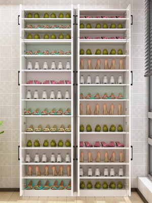 Home Large Capacity Balcony Shoe Cabinet Integrated Wall Storage Cabinet Sun Protection Waterproof No Assembly Solid Wood Multi-layer Storage Cabinet