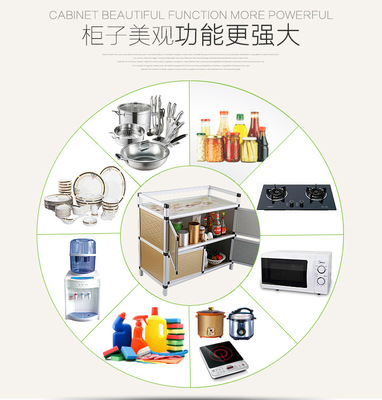 Aluminum alloy cabinet stove cabinet stainless steel storage organizer household assembled economical simple cabinet kitchen cabinet