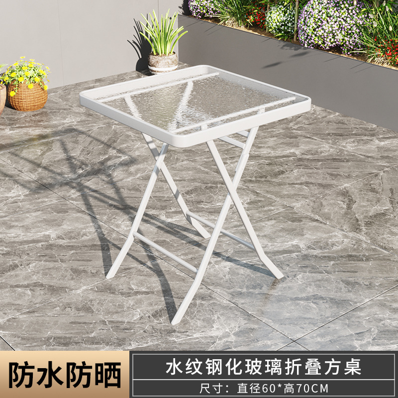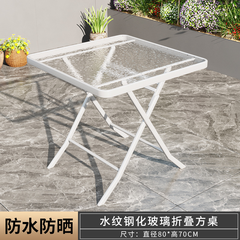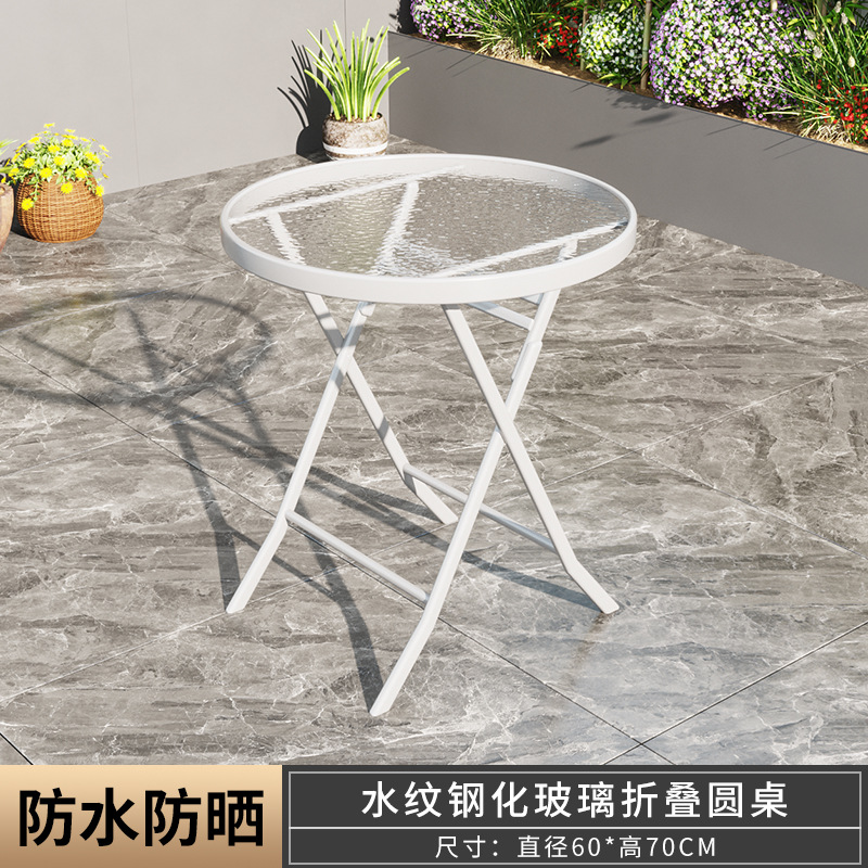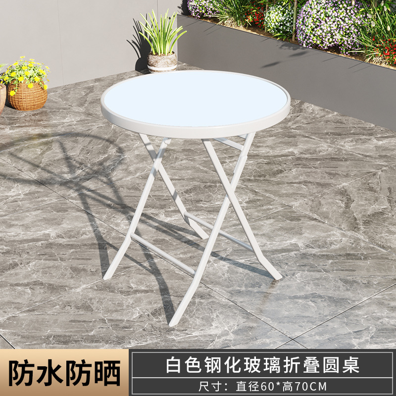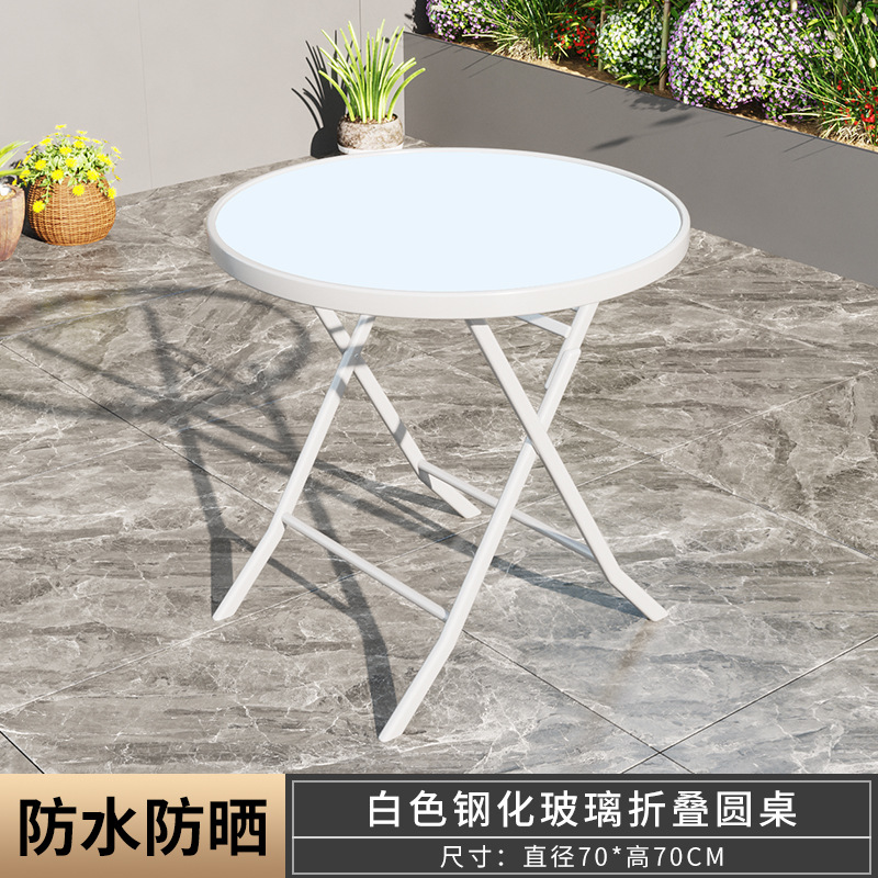 摺疊餐桌奶茶店簡易小圓桌陽台家用戶外打牌桌子鋼化玻璃小圓桌子