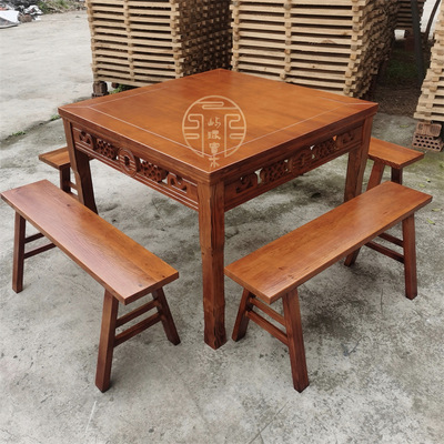 實木四方桌老式八仙桌新中式簡約仿古家用飯店農家樂商用餐桌餐椅