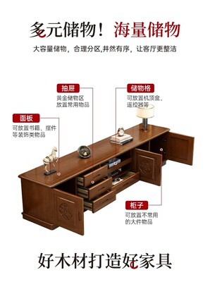 Modern Chinese style solid wood TV cabinet floor cabinet coffee table set small apartment living room background cabinet extendable storage integrated cabinet