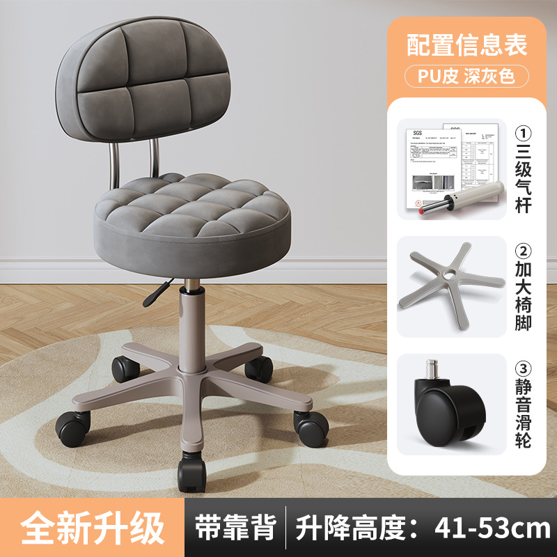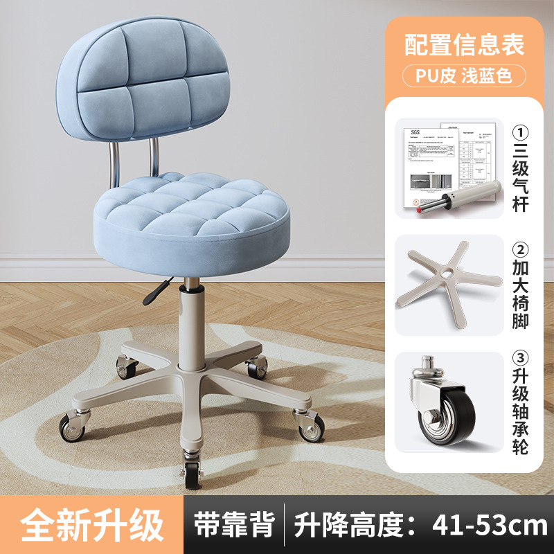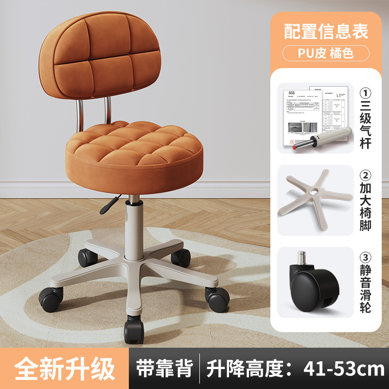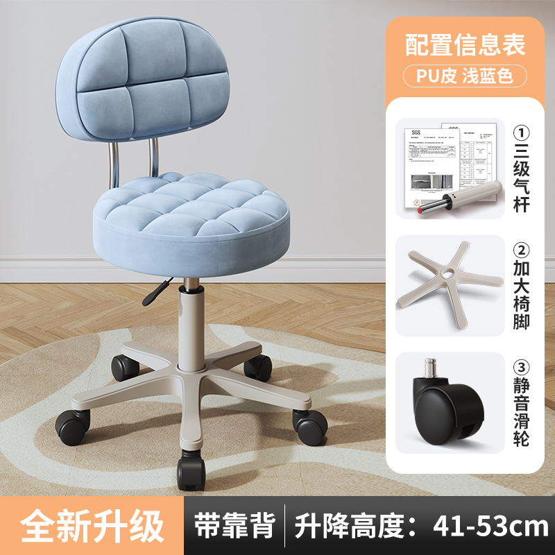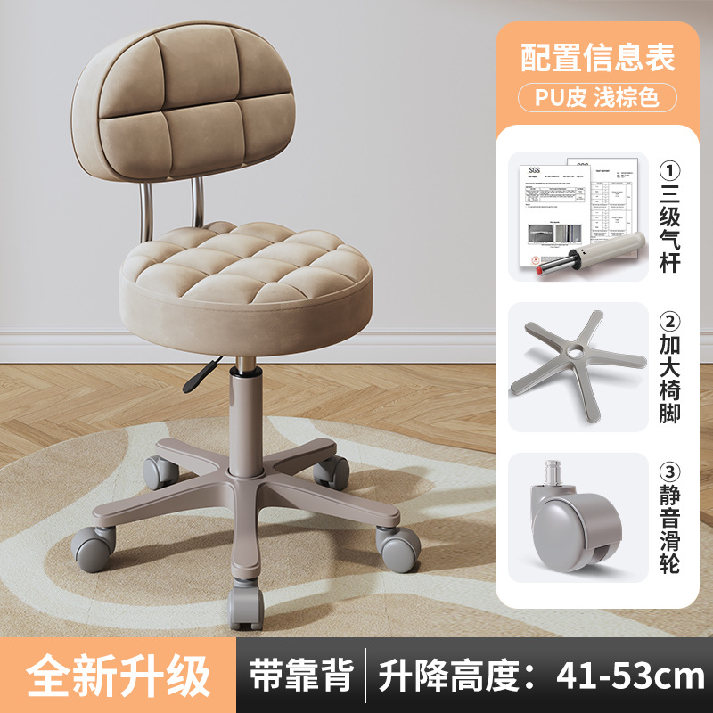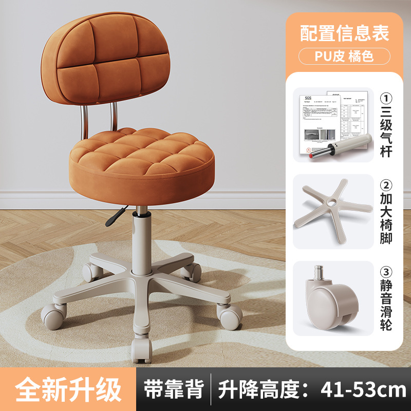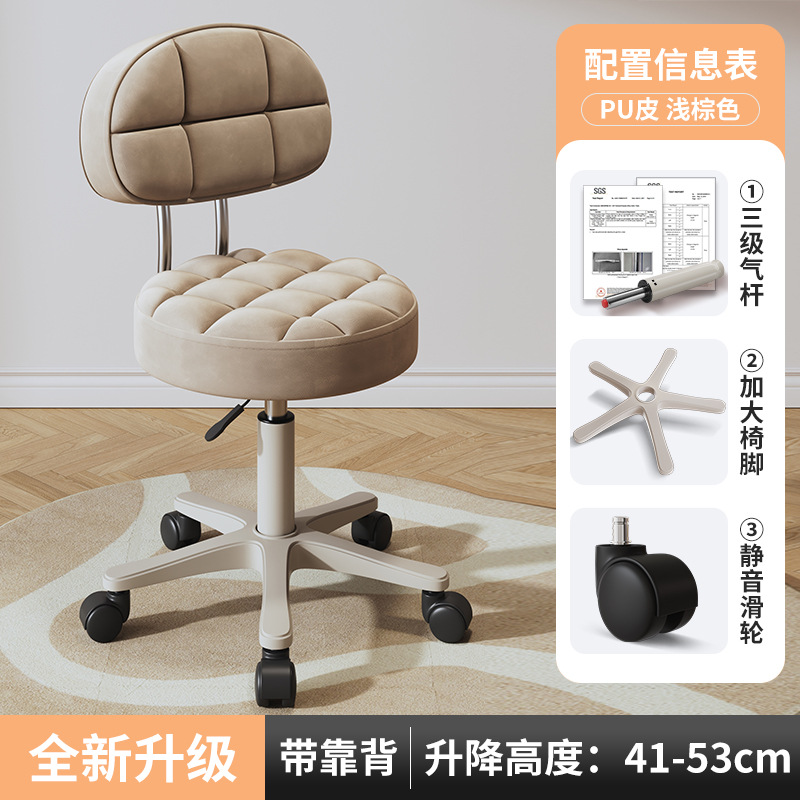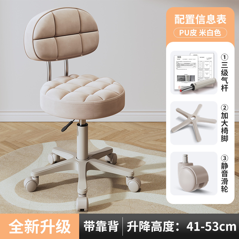 New beauty chair with wheels, suitable for beauty salons, barber shops, large work chairs, hairdressing and nail salon, home use, height-adjustable backrest round stool