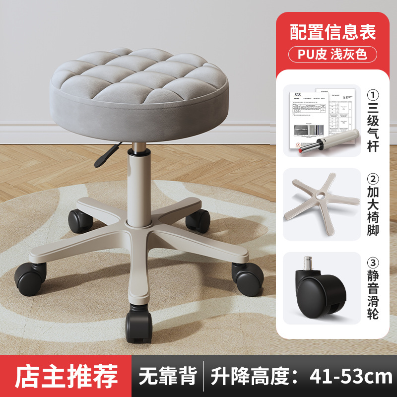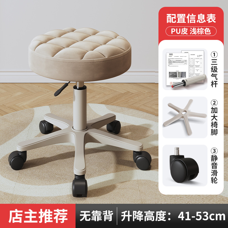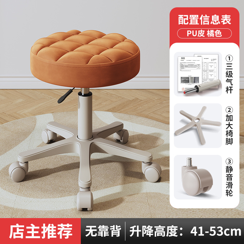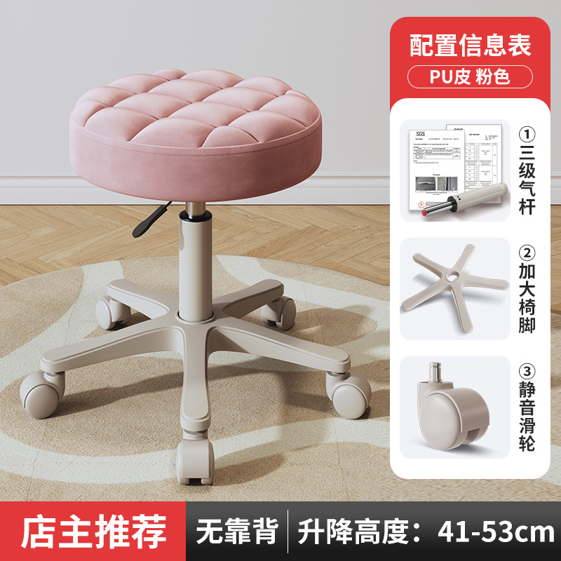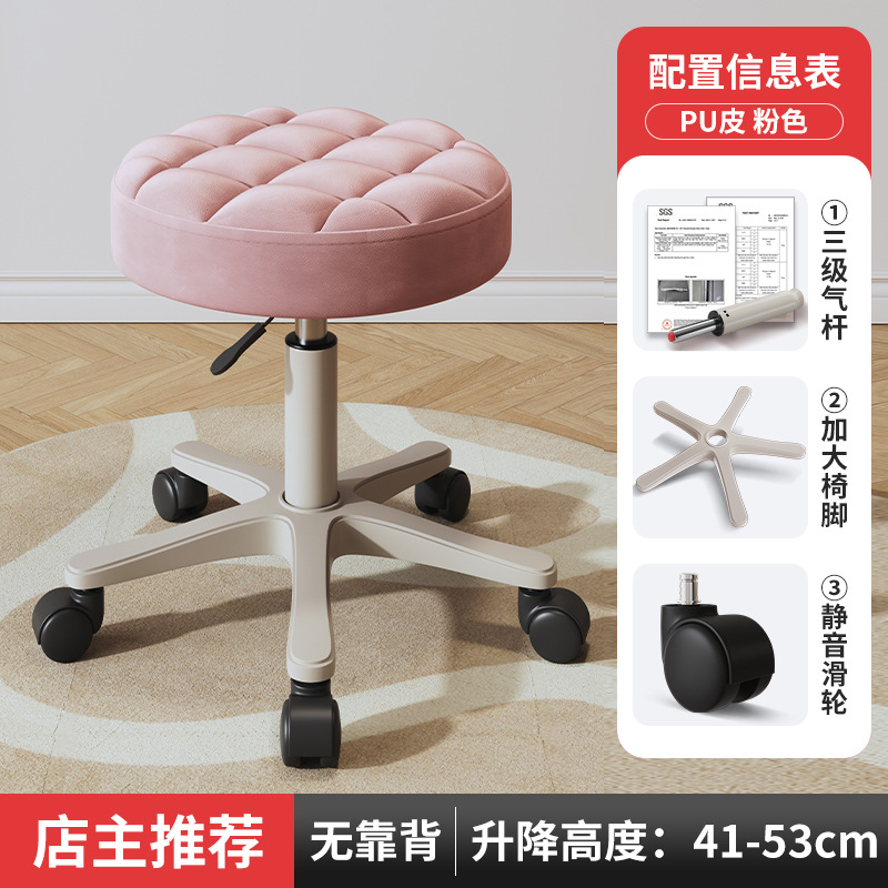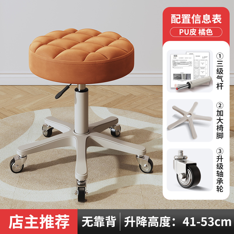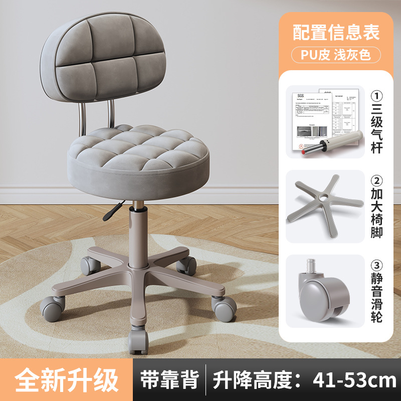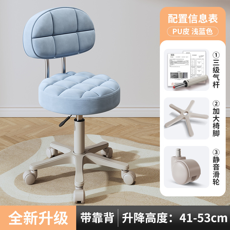 New beauty chair with wheels, suitable for beauty salons, barber shops, large work chairs, hairdressing and nail salon, home use, height-adjustable backrest round stool