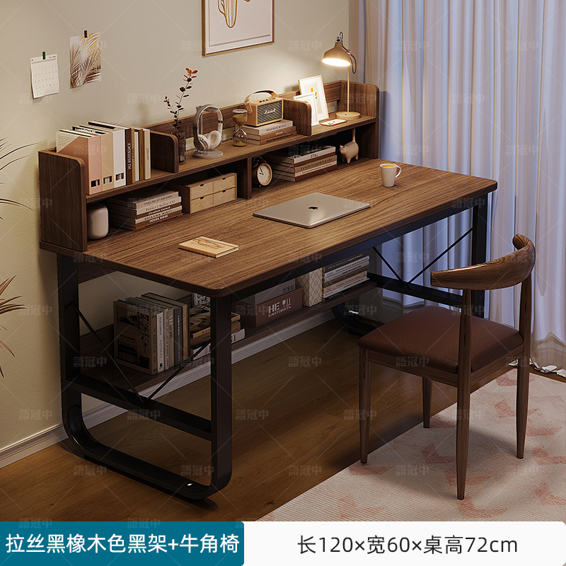 書桌學生家用臥室學習桌初中生寫字桌帶書架電腦桌簡易工作檯桌子