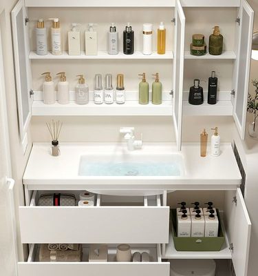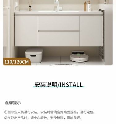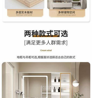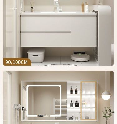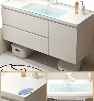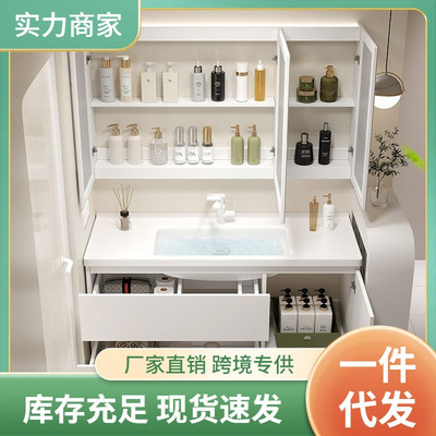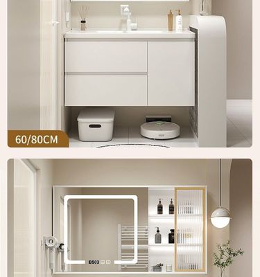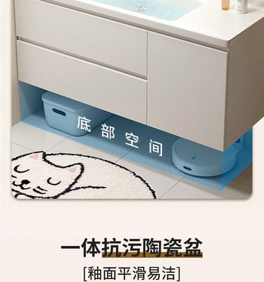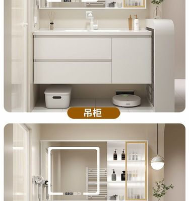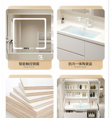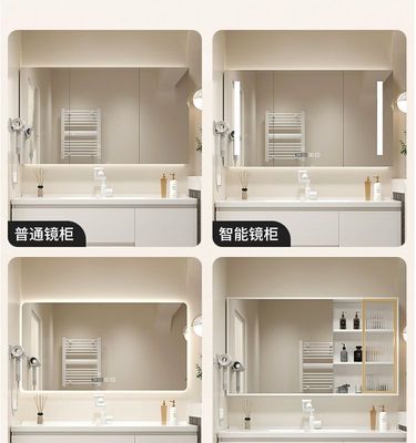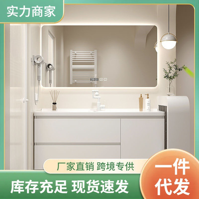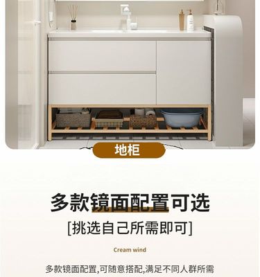 現代智能奶油風浴室櫃組合膚感陶瓷一體洗手台盆衛生間洗漱洗臉盆