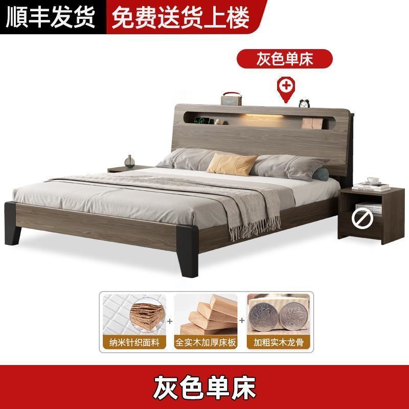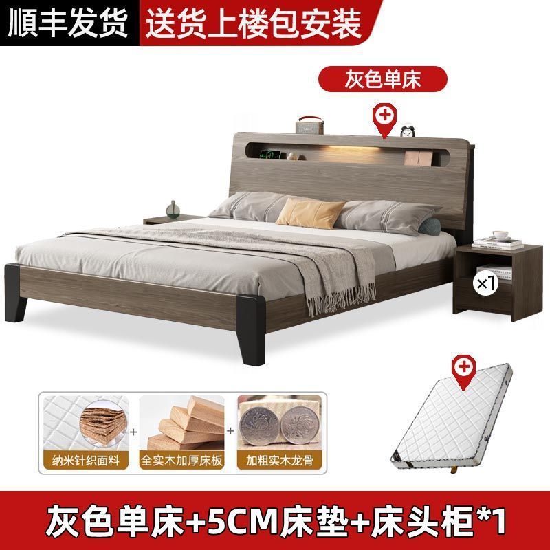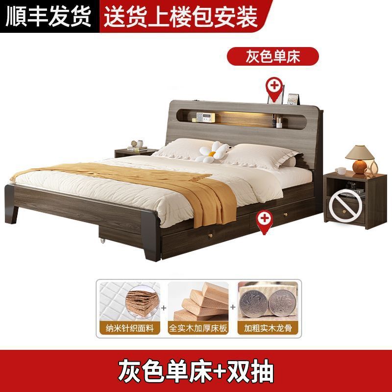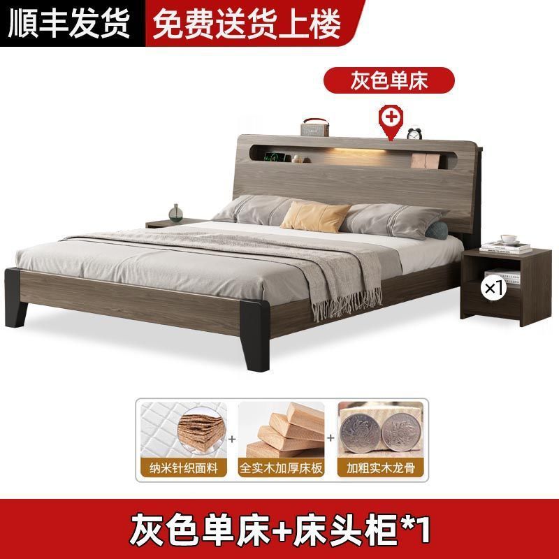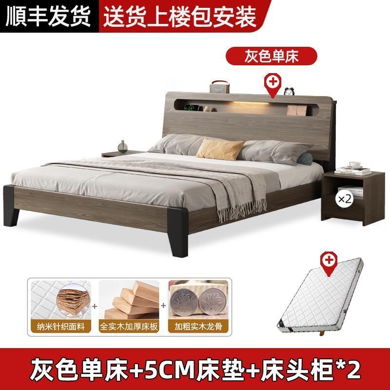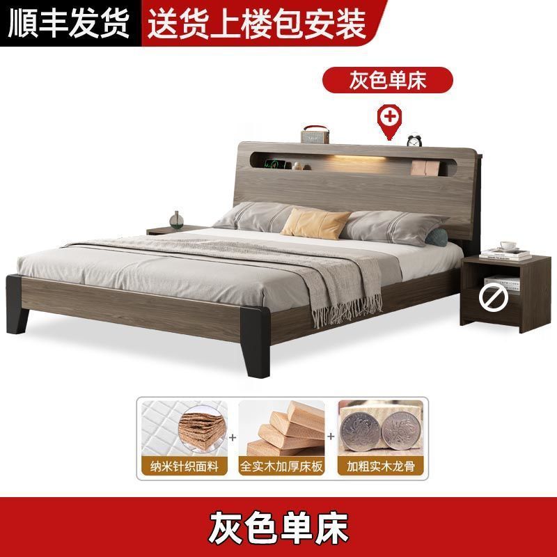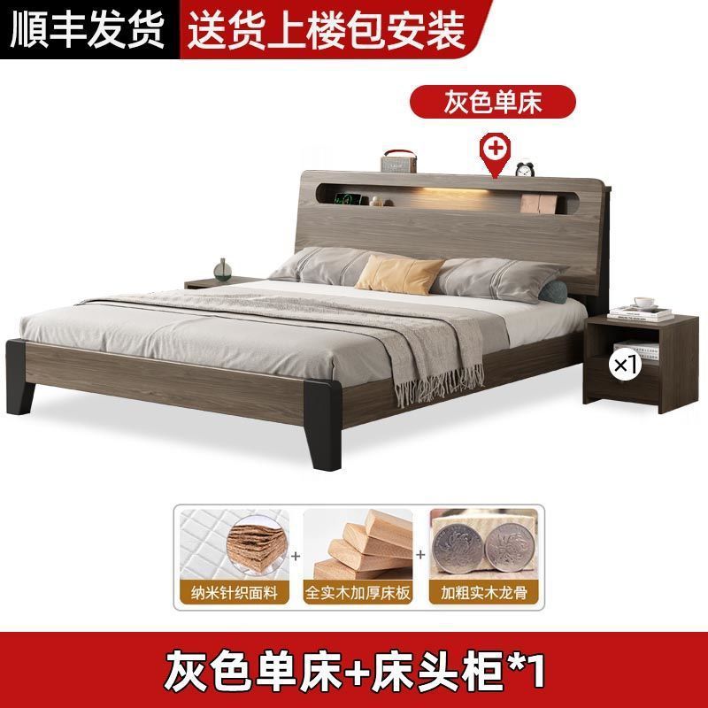Solid wood bed Nordic 1.8x2 meters double modern simple 1.5 meters home small apartment master bedroom large bed 1.2m single