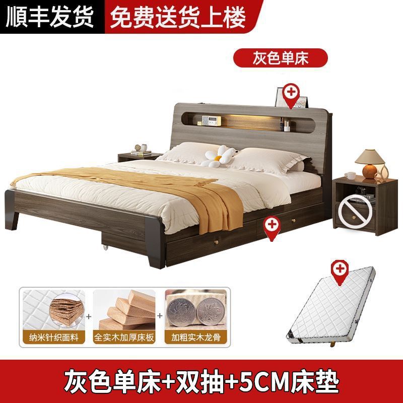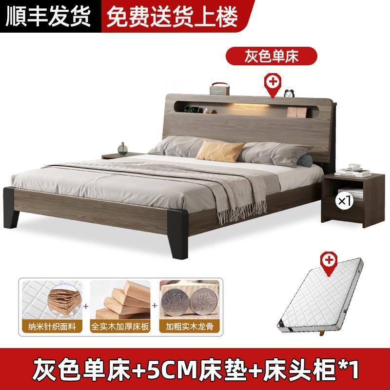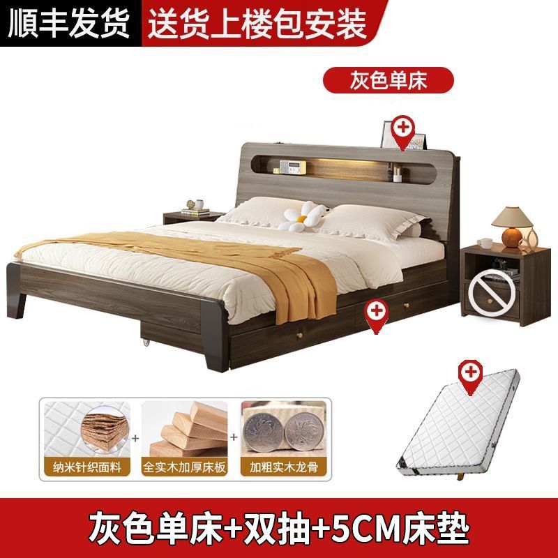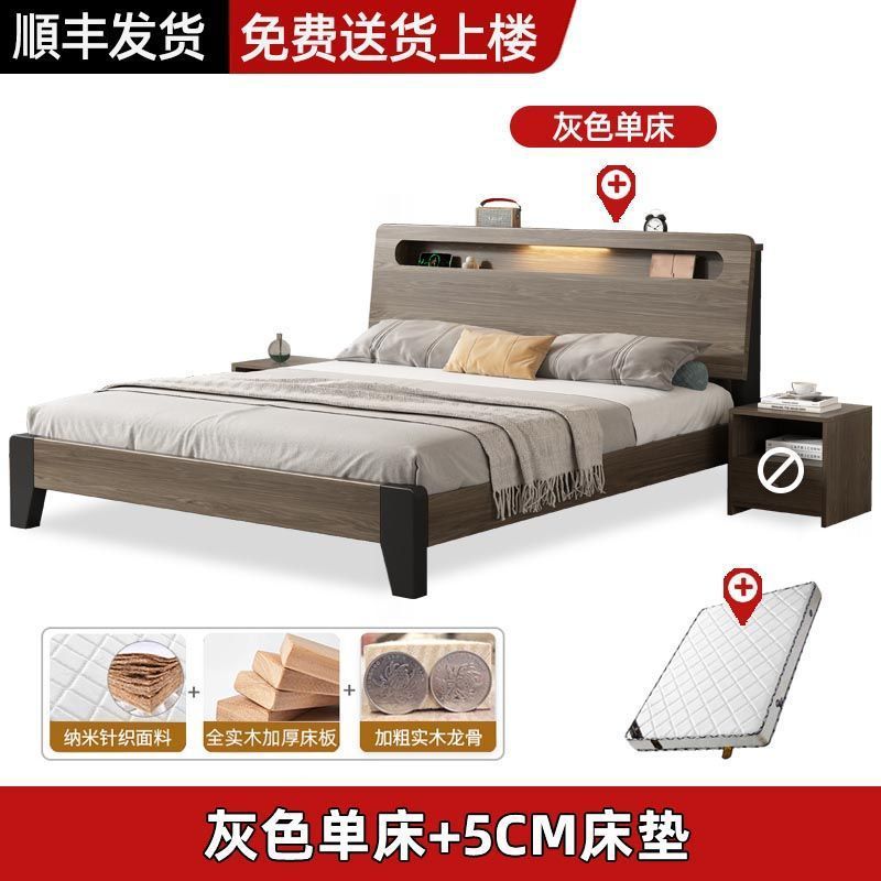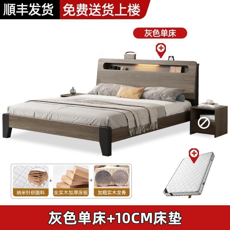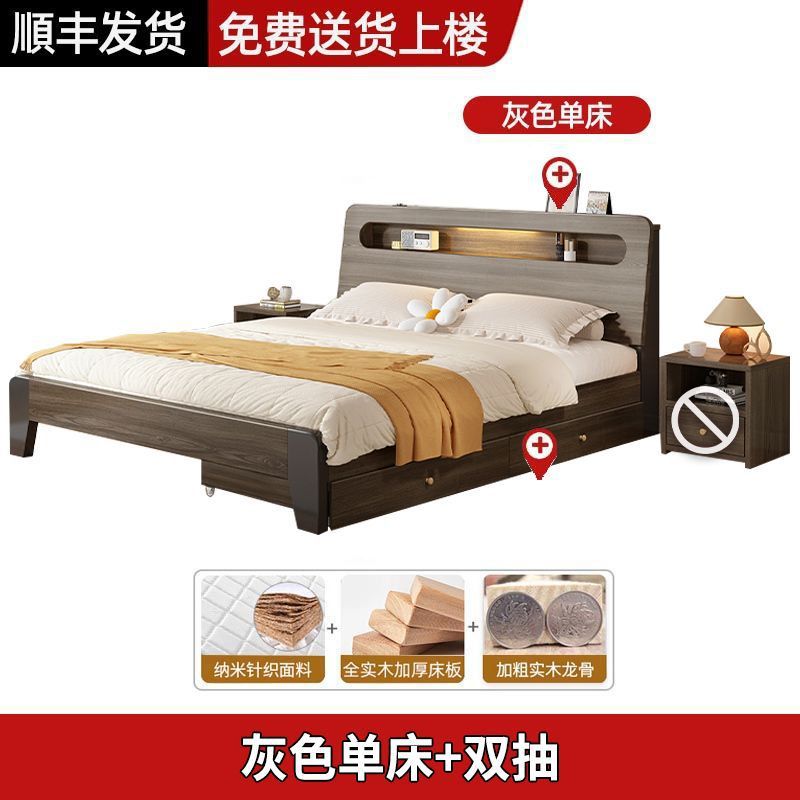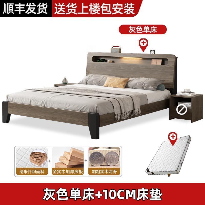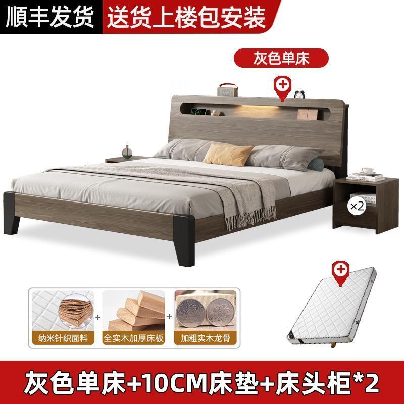 Solid wood bed Nordic 1.8x2 meters double modern simple 1.5 meters home small apartment master bedroom large bed 1.2m single