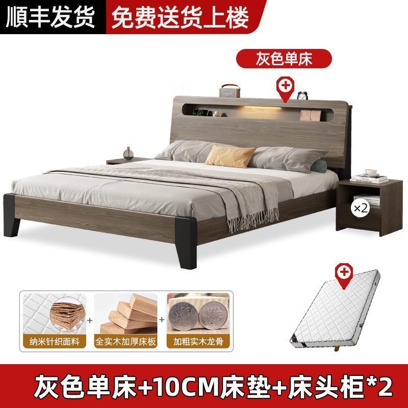 Thickened Wooden Bed + Cabinet * 2 [Includes Delivery to Your Home]
