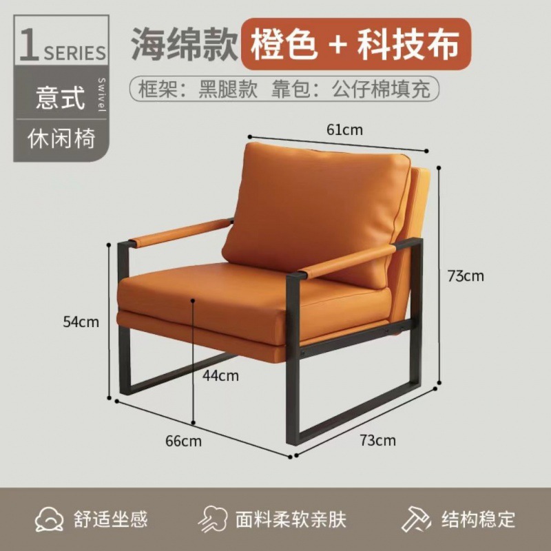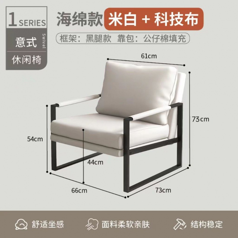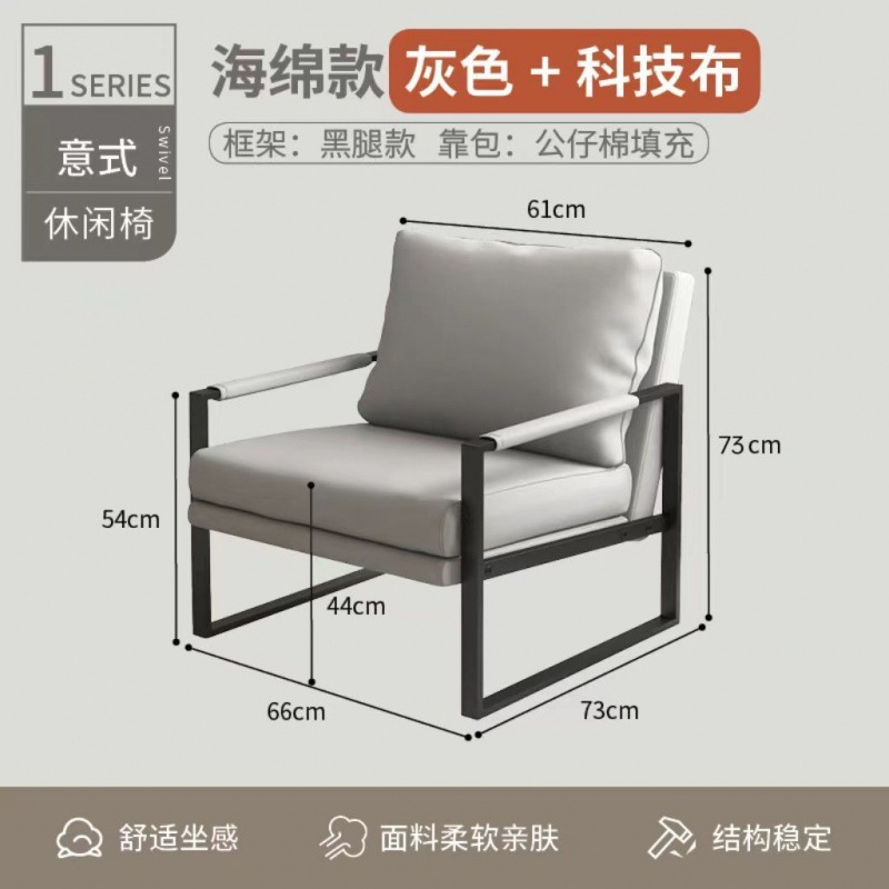 Light luxury minimalist casual sofa chair for living room, coffee shop rest area reception sofa single chair, hotel balcony chair